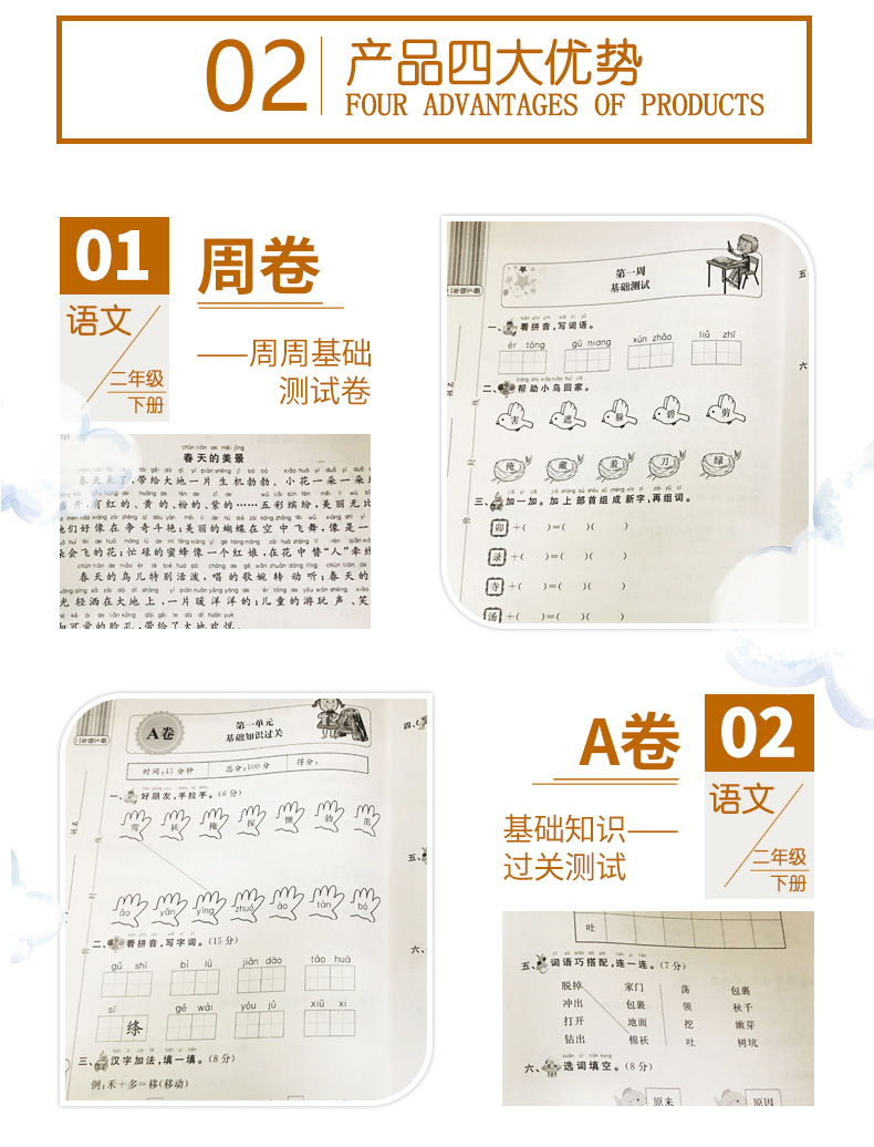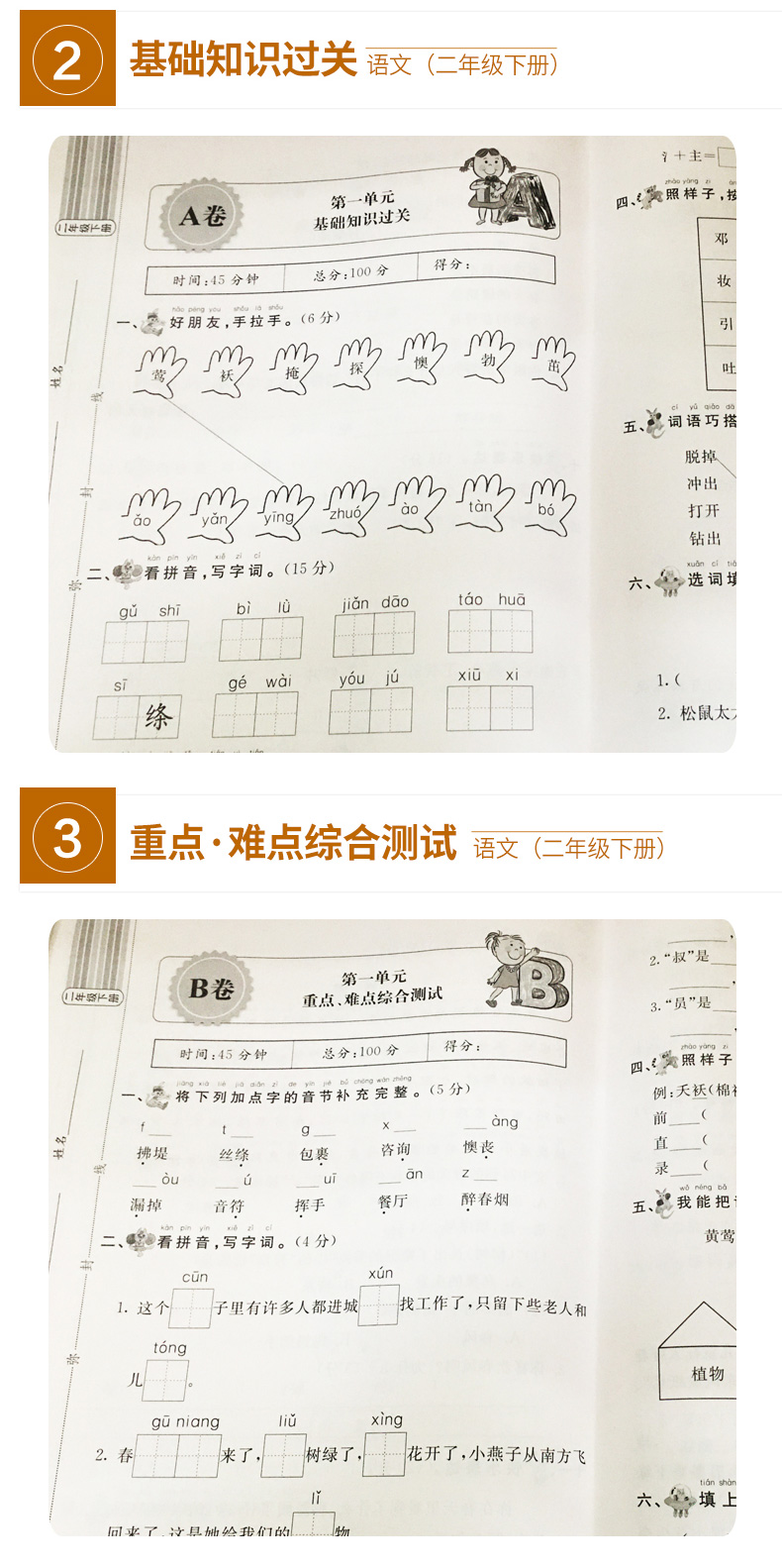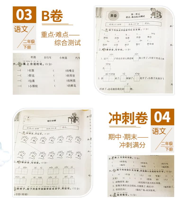 小学二年级语数下册试卷,环保印刷,字迹清晰,同步课本,提前预习,图文结合,巩固知识点,让孩子赢在起跑线上!