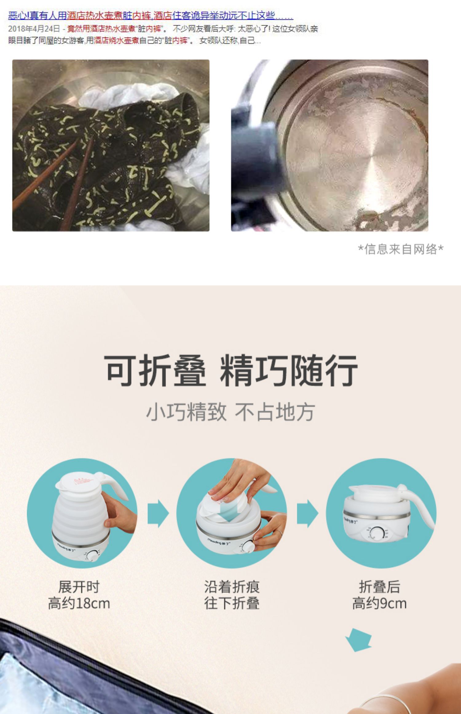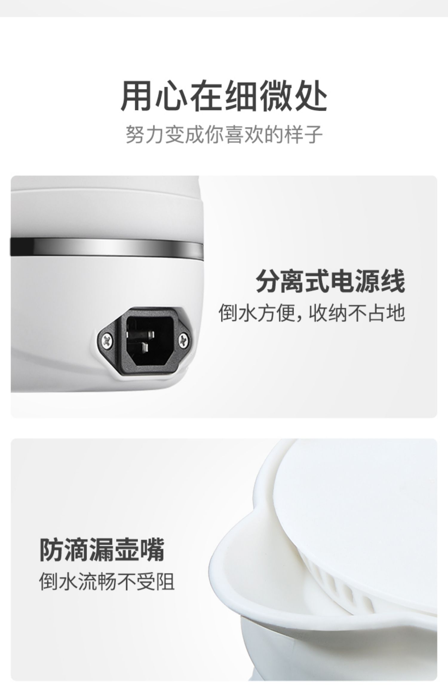 【亏本大冲量】带上旅行折叠电热水壶,去哪都方便,住酒店,出外旅行,一壶在身舒适安心,分离式电源线,一年换新,自动断电,24小时恒温,年前最后一期秒杀活动。