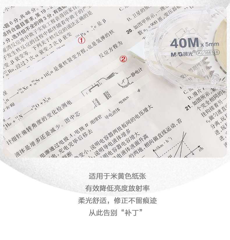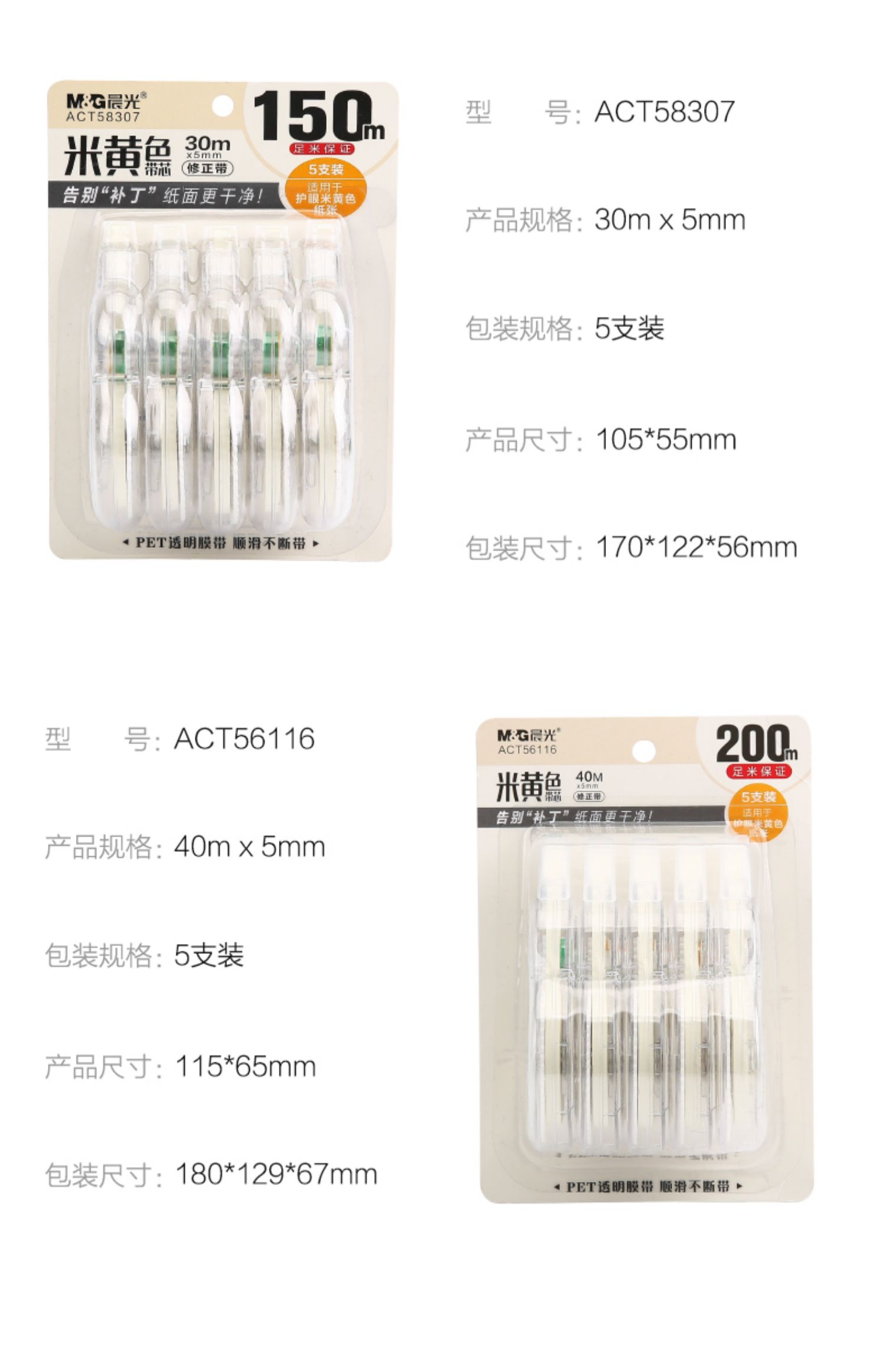 【晨光官方旗舰店】晨光修正带五支装,超级实惠,大容量,流畅不卡带,覆盖性强,适合多种常规笔书写。告别“补丁”纸面更干净!平滑易书写!