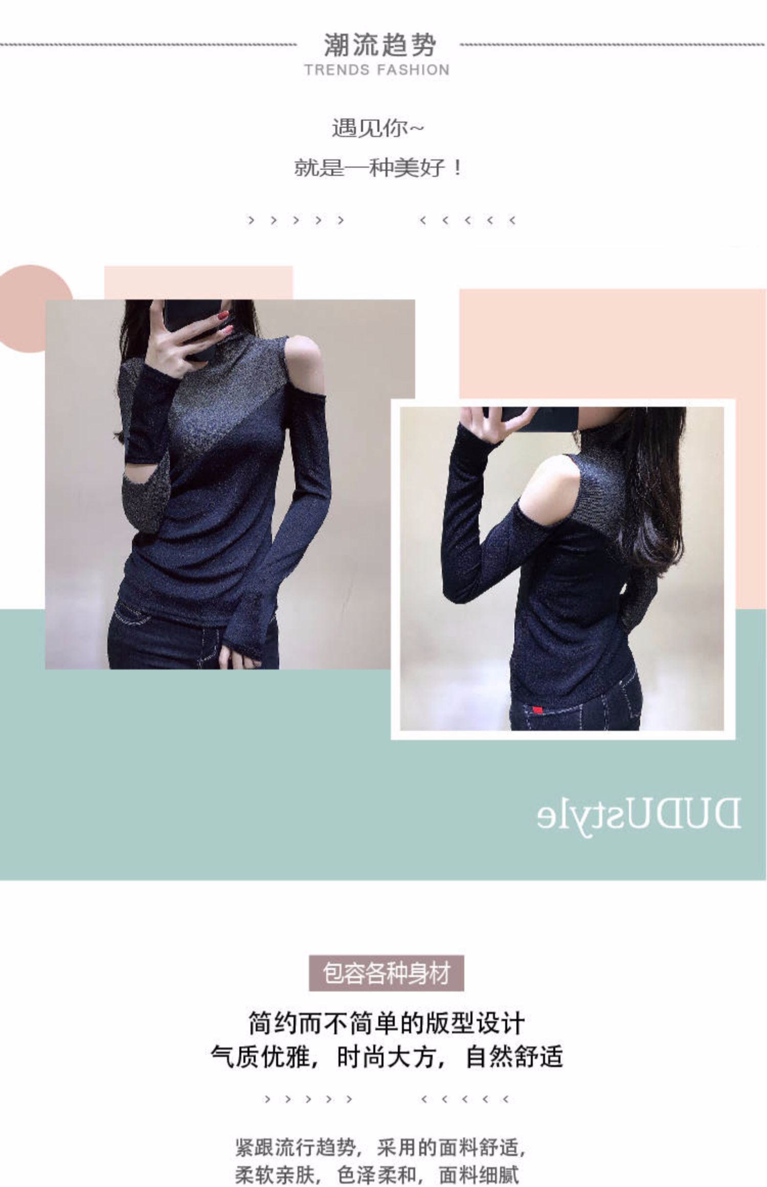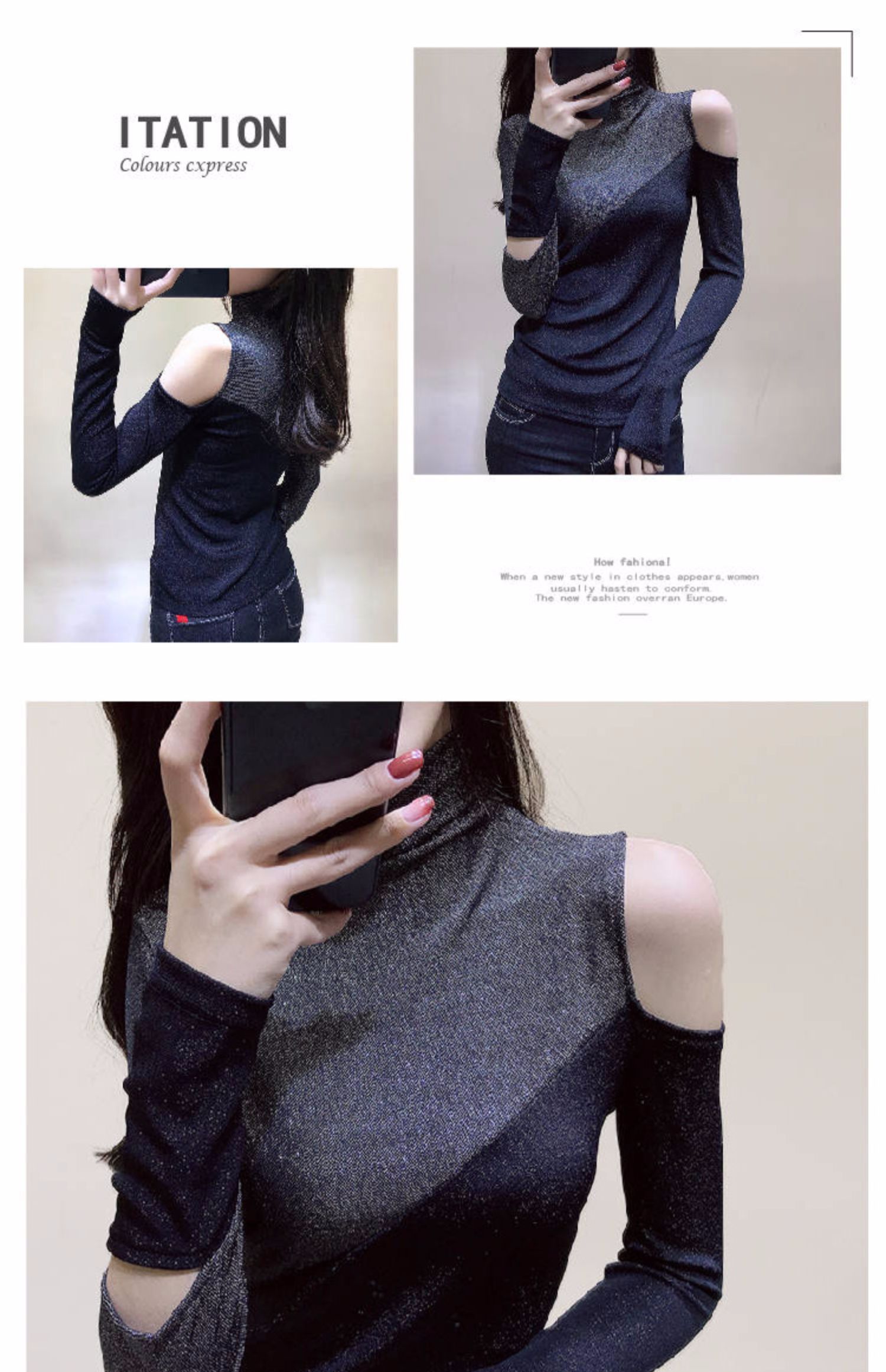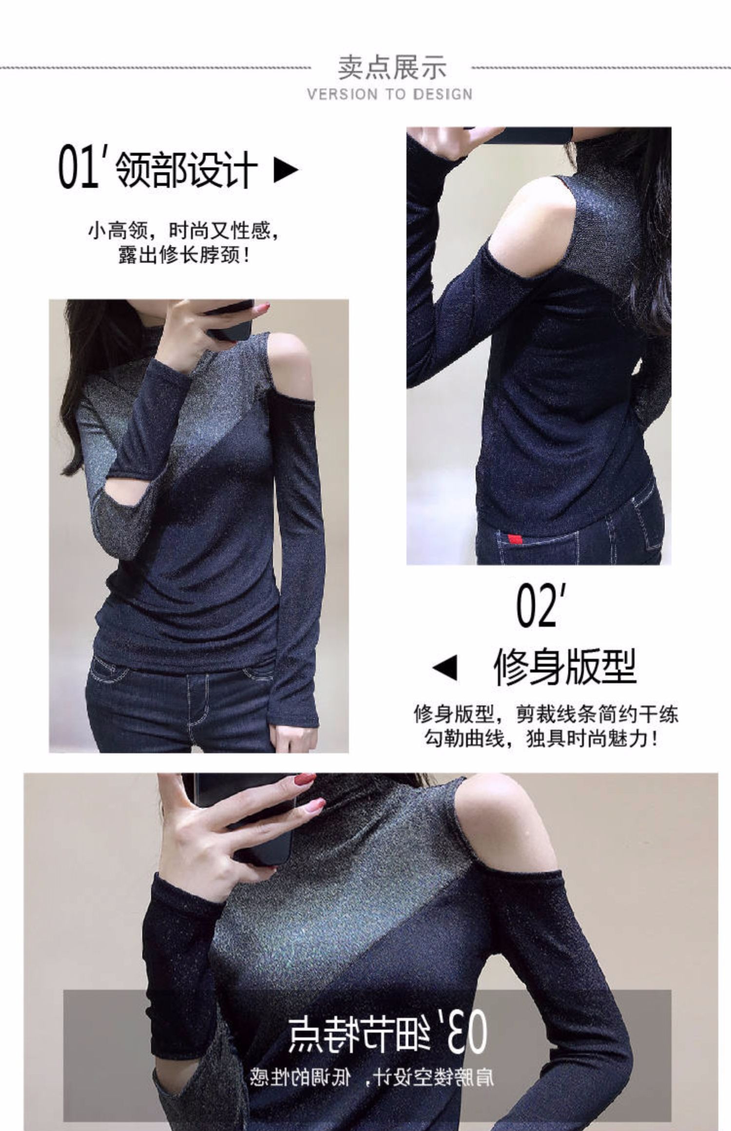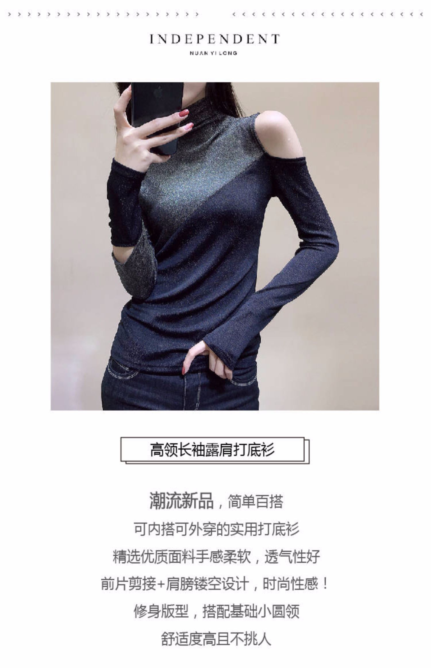 欧洲站2019秋冬新款性感高领长袖T恤女修身百搭打底小衫露肩上衣,超仙~女生都爱的露肩上衣,时尚而柔美。凸显层次感