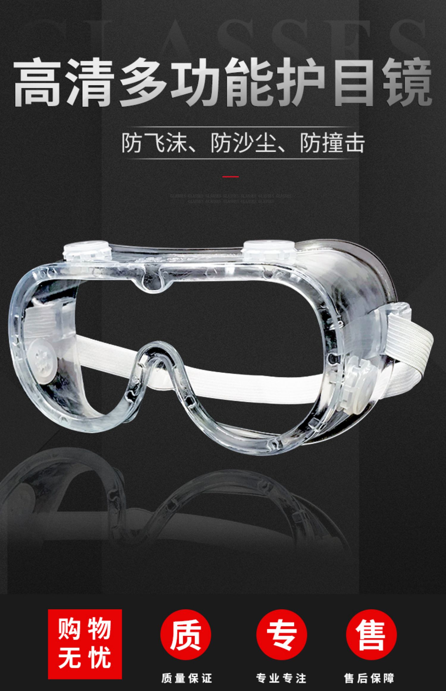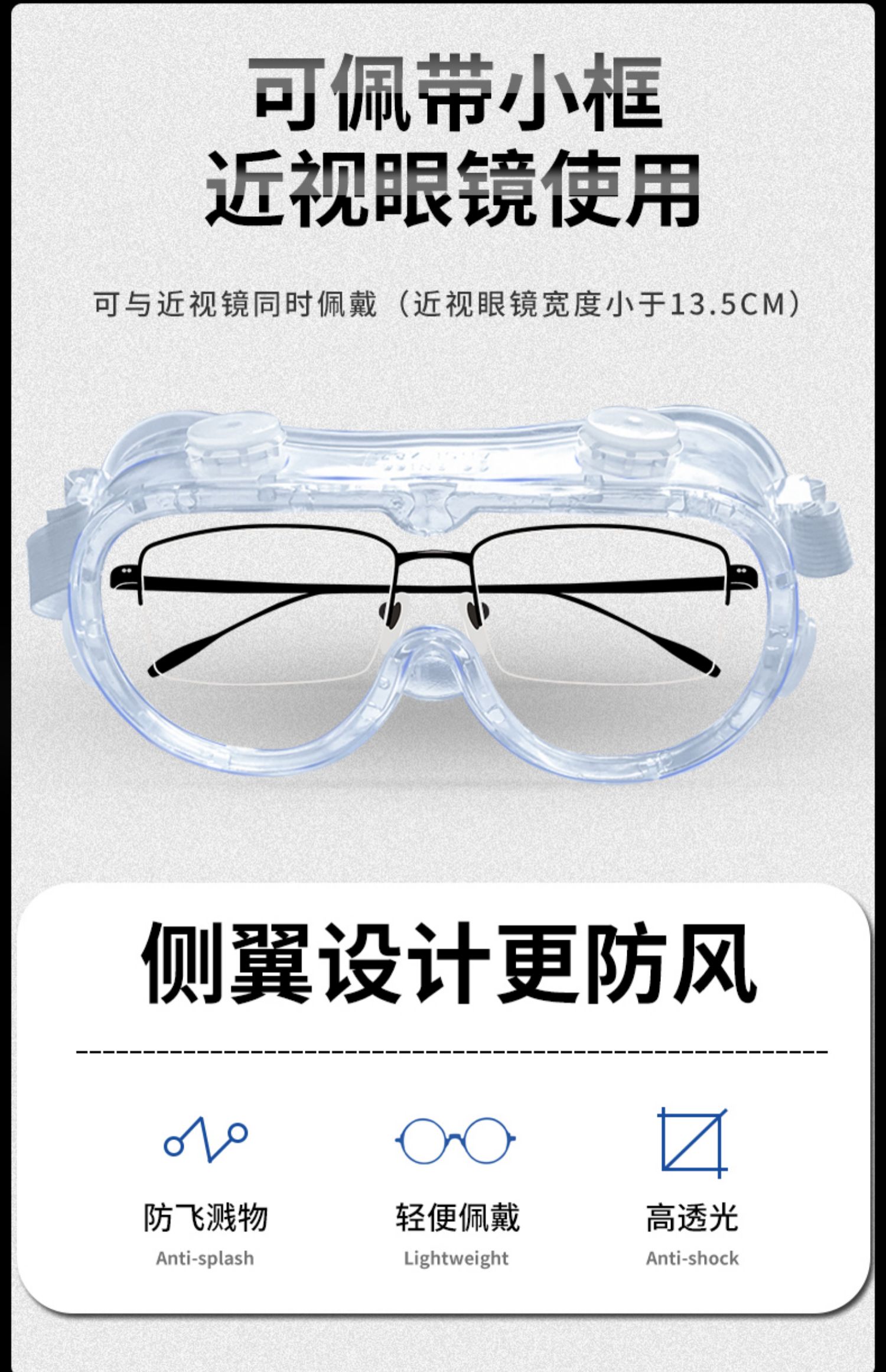 【当天发货】出门必备高清多功能护目镜!航天材质聚碳酸酯镜片,防紫外线,防飞沫,防撞,安全无忧!质轻无压迫,高清透光,封闭型防风镜!内可佩戴眼镜,高弹伸缩带,佩戴舒,不易掉落!【赠运费险】