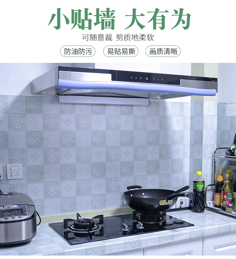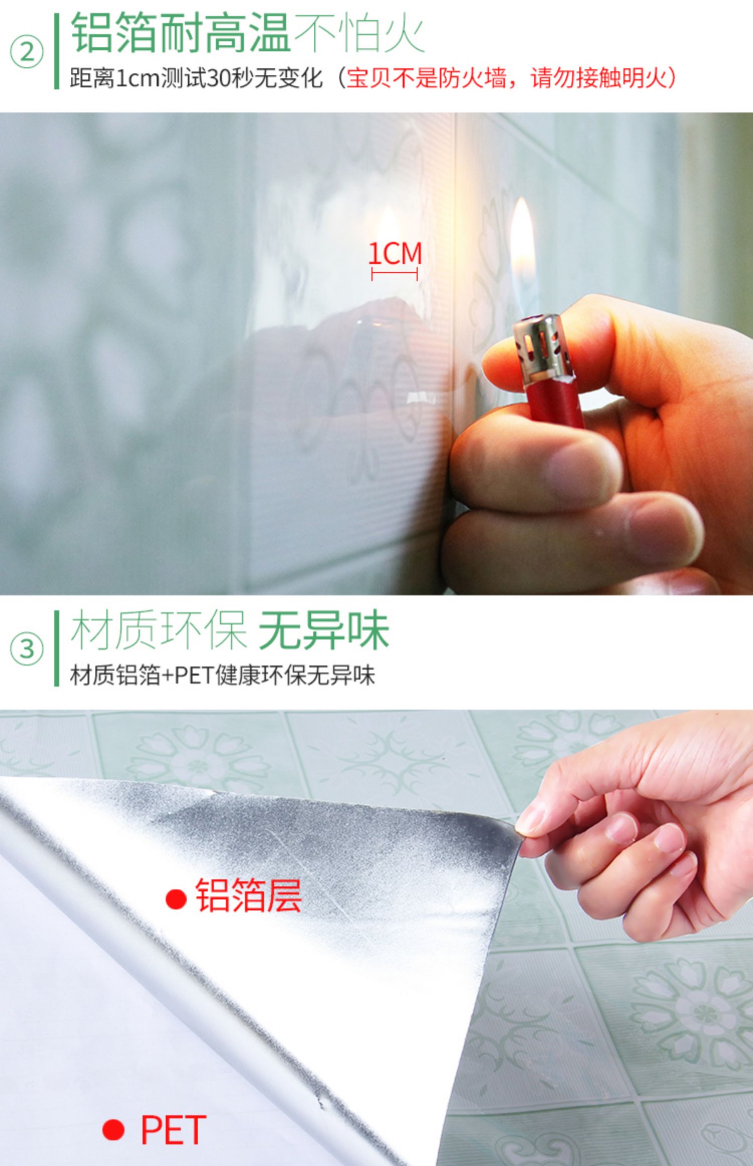 厨房用油烟贴纸防水自粘壁纸墙纸,加厚材质,防油防污,易贴易撕,防刮耐磨,耐高温,厨房油烟一擦就干净,贴在厨房又美观又干净,油污很容易清理,很实用的东西!多款花色可选!居家必备