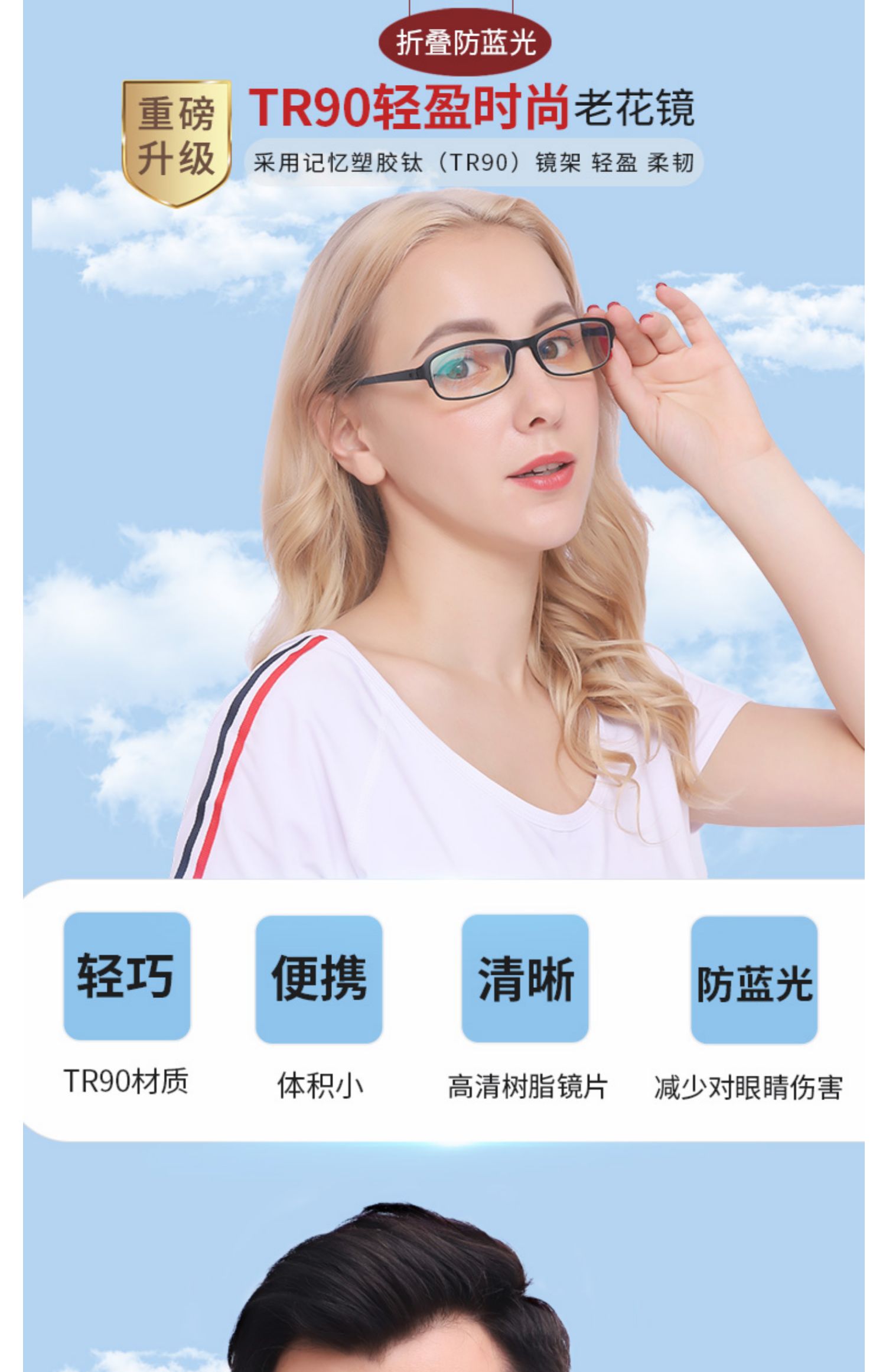 【赠运费险】【南极人官方旗舰店】美得不像老花镜!材质轻盈柔韧,长时间佩戴不压鼻,适合各种脸型~高清树脂镜片,防蓝光技术,缓解疲劳,减少对眼睛伤害!
