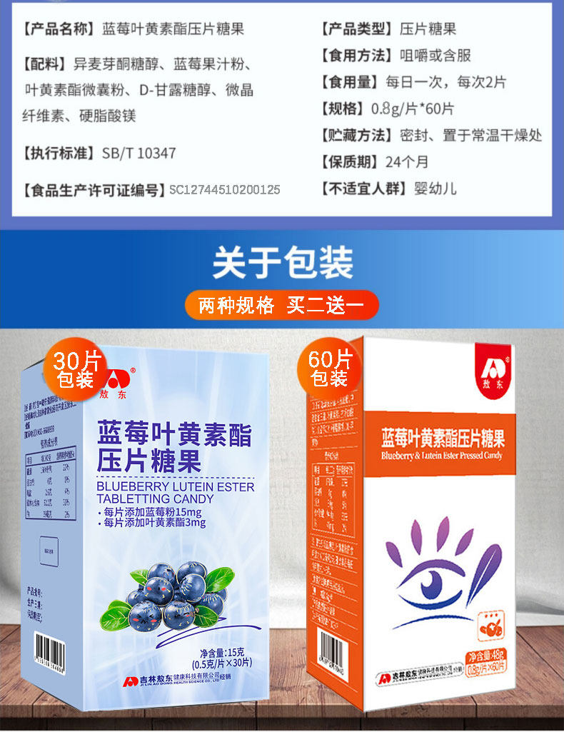 【敖东】蓝莓叶黄素体素黄色素片30粒