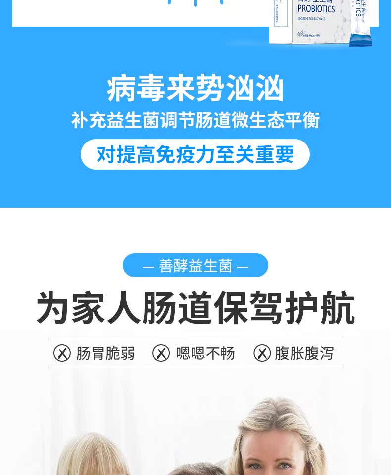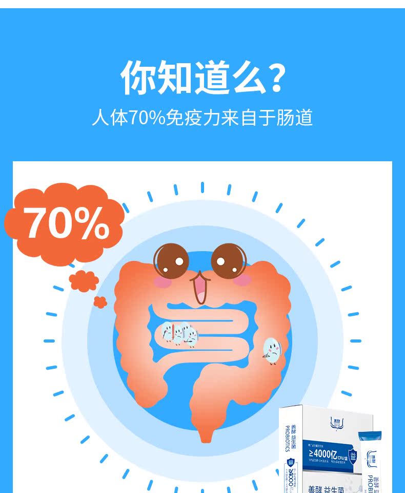 肠胃肠道调理益生元冻干粉,2800亿进口活菌直达肠道,调理肠道,促进吸收,提高免疫力守护全家肠胃健康,独立小包装,健康卫生。孕妇母婴可放心食用!速来抢购~
