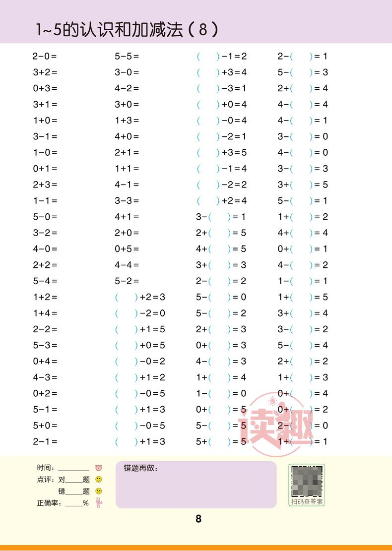 小学生每天100道口算题,一年级口算题卡人教版同步训练100内的加减法,让您的宝贝,爱上学习,精于口算
