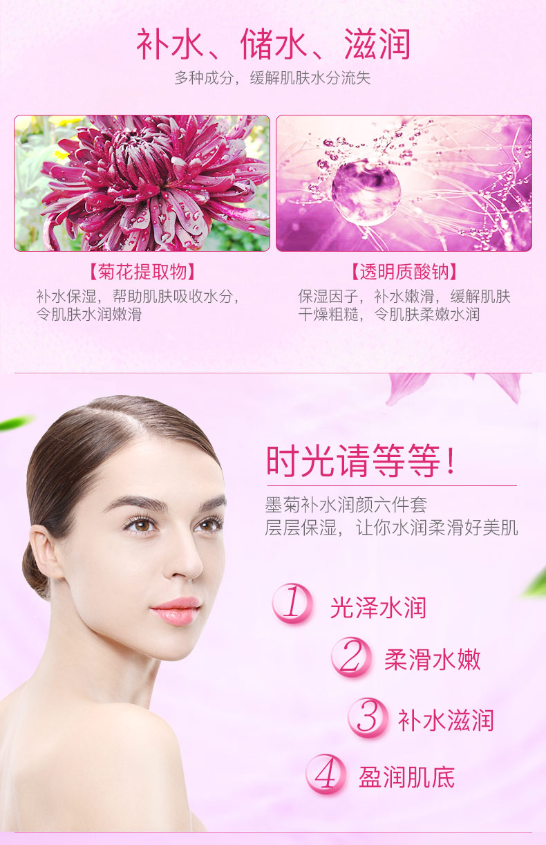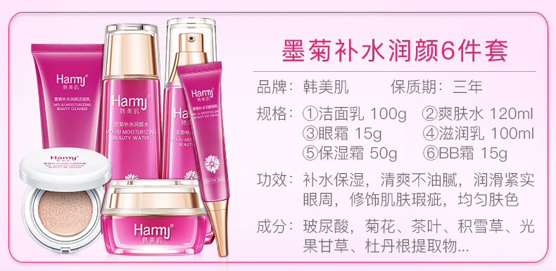 钜惠墨菊套盒,屈臣氏同款~秒杀抢购只要需89元!内含洁面乳100g,爽肤水120ml,眼霜15g,滋润乳100ml,保湿霜50g,BB霜15g!一套一应俱全,补水保湿,清爽不油腻【赠运费险】