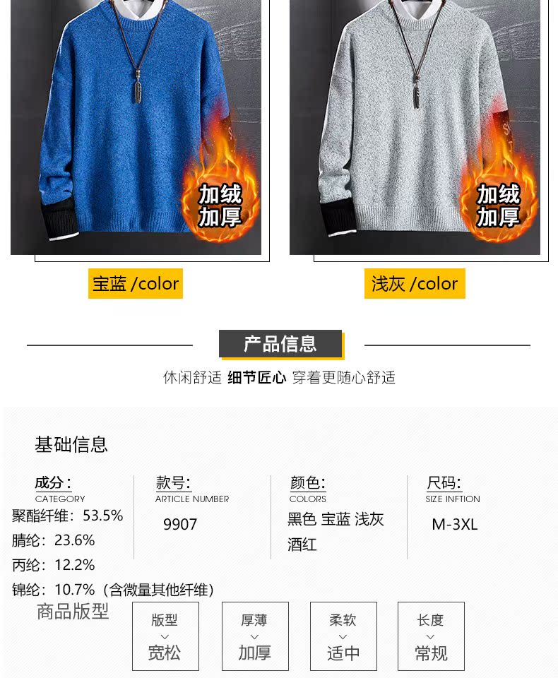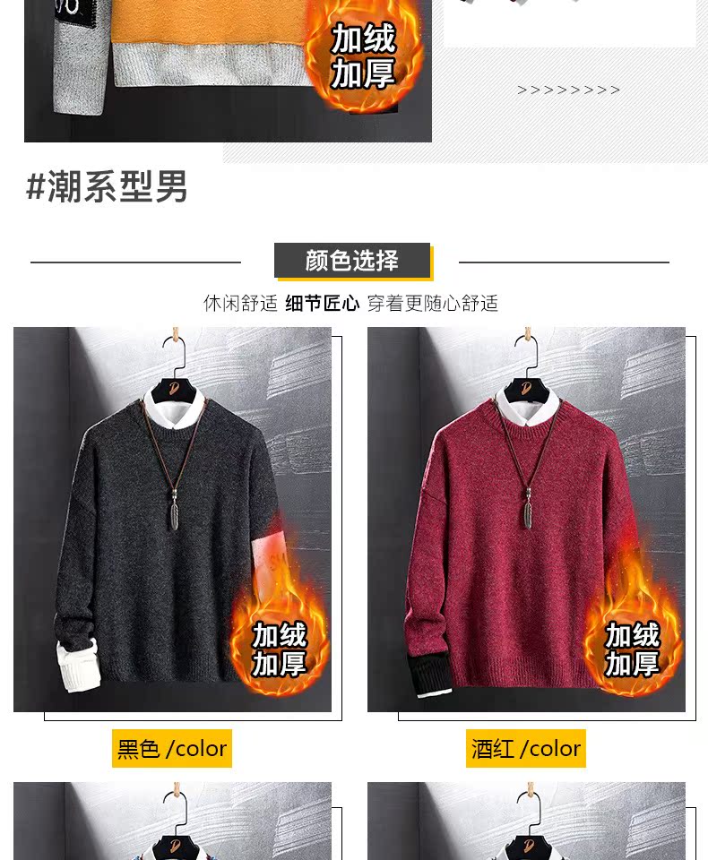 男士半高领毛衣冬季加绒加厚潮流衣服宽松
