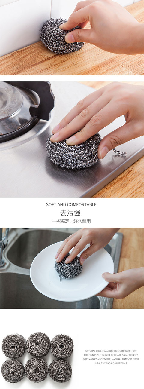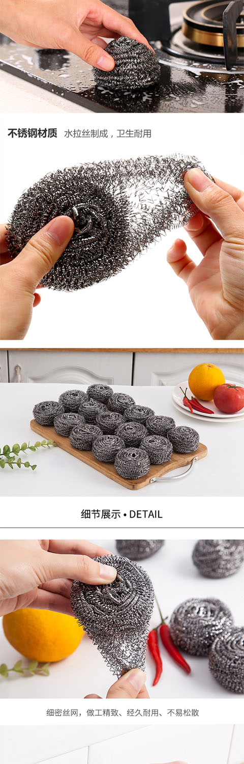 优质选材,不生锈不断丝,安全耐用,不伤手去污力强,能快速去除玻璃、陶瓷、厨具上顽固性污渍,是家庭酒店去污好助手
