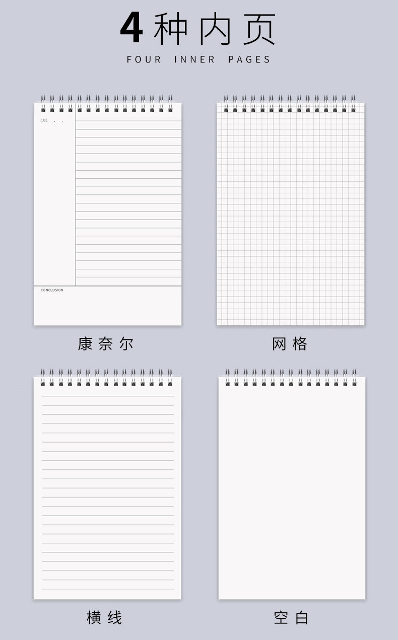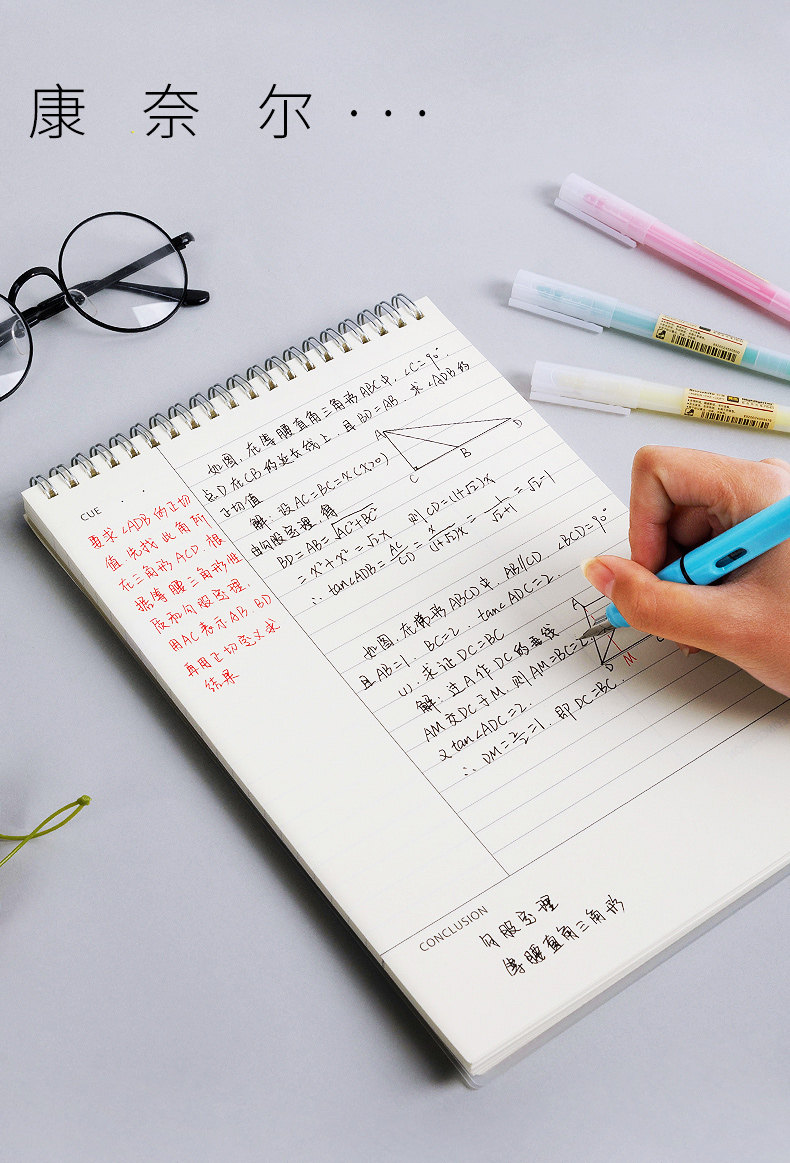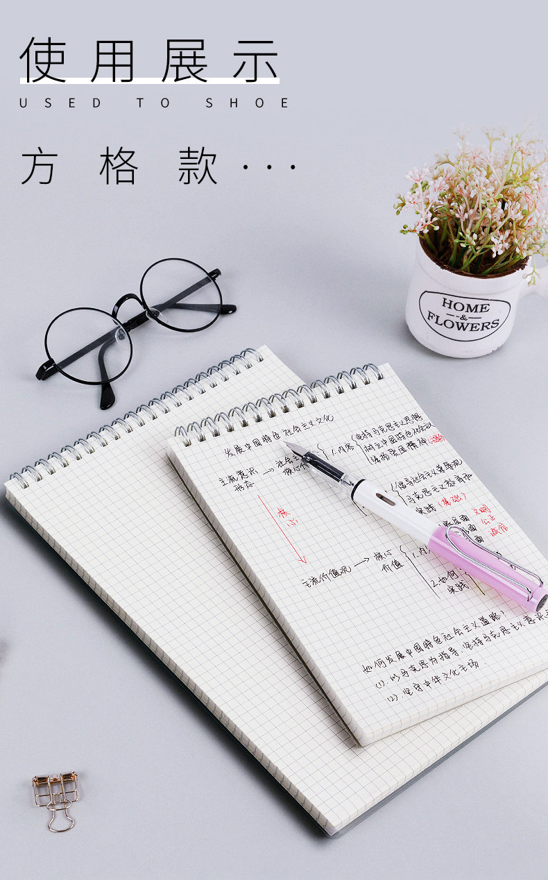 【超值活动上翻线圈本2本+2支笔+科目贴!手慢无!】有方格、横线、错题、空白都可选,3种大小,4种内页,加厚纸张每本68张,银色金属双线圈,不易掉页。平时用作草稿或者手记都很方便!