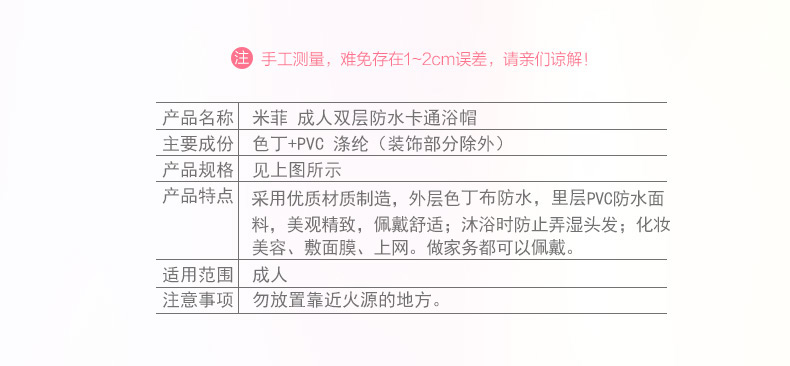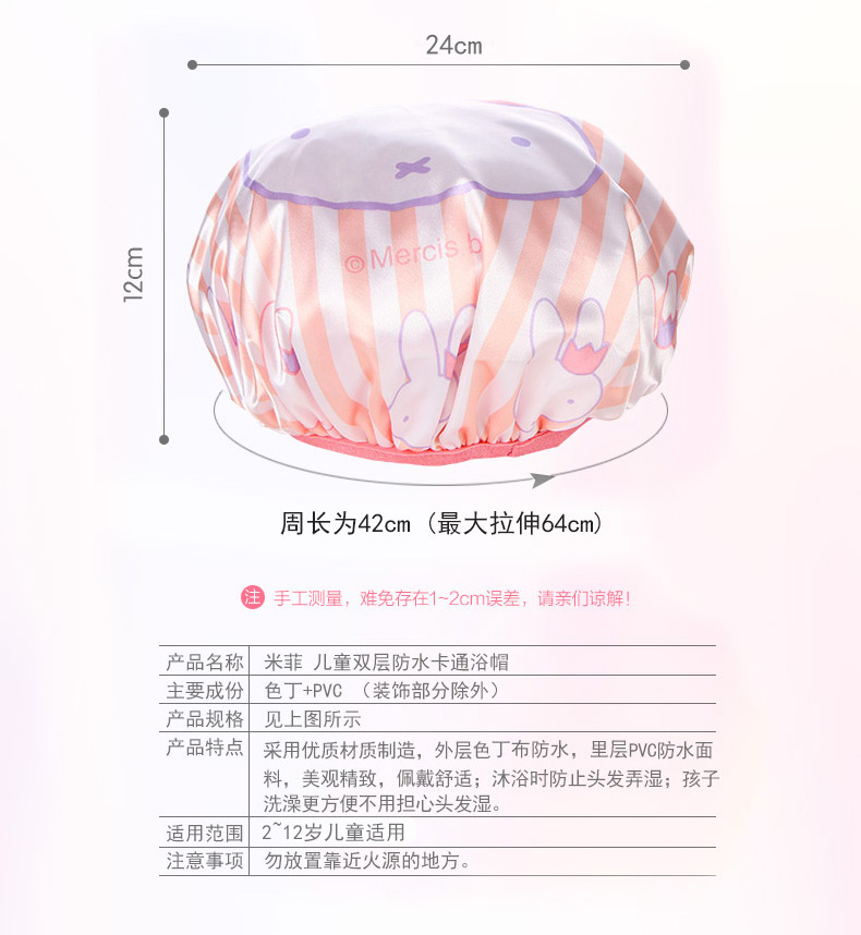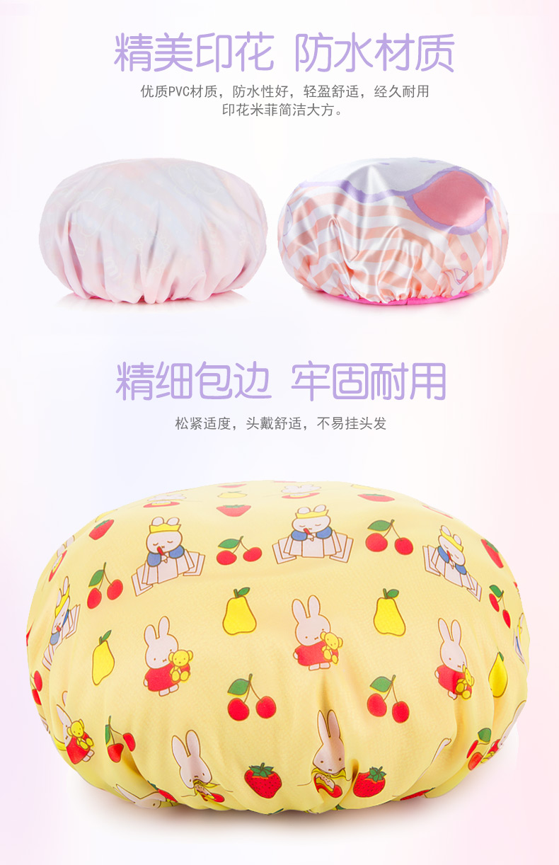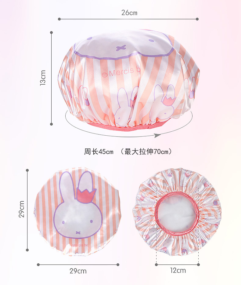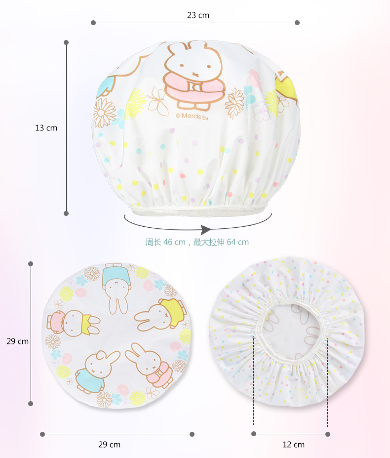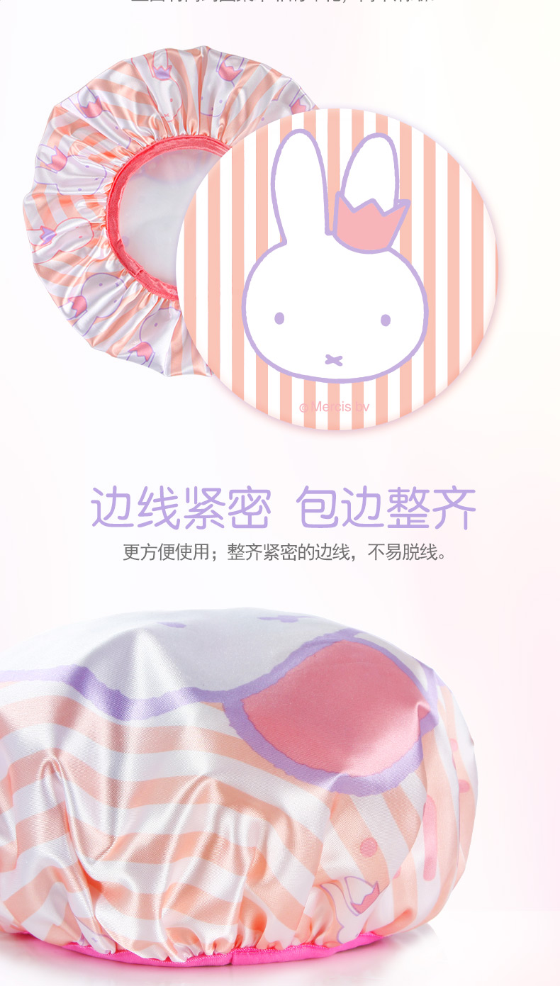 【买就送米菲防水浴帽!!共发两个浴帽】双层防水层,精美印花,防水、防油、防灰尘。柔顺丝滑不掉色。松紧带的设计,不勒头不紧绷,大人小孩都可以用的浴帽!!【赠运费险】