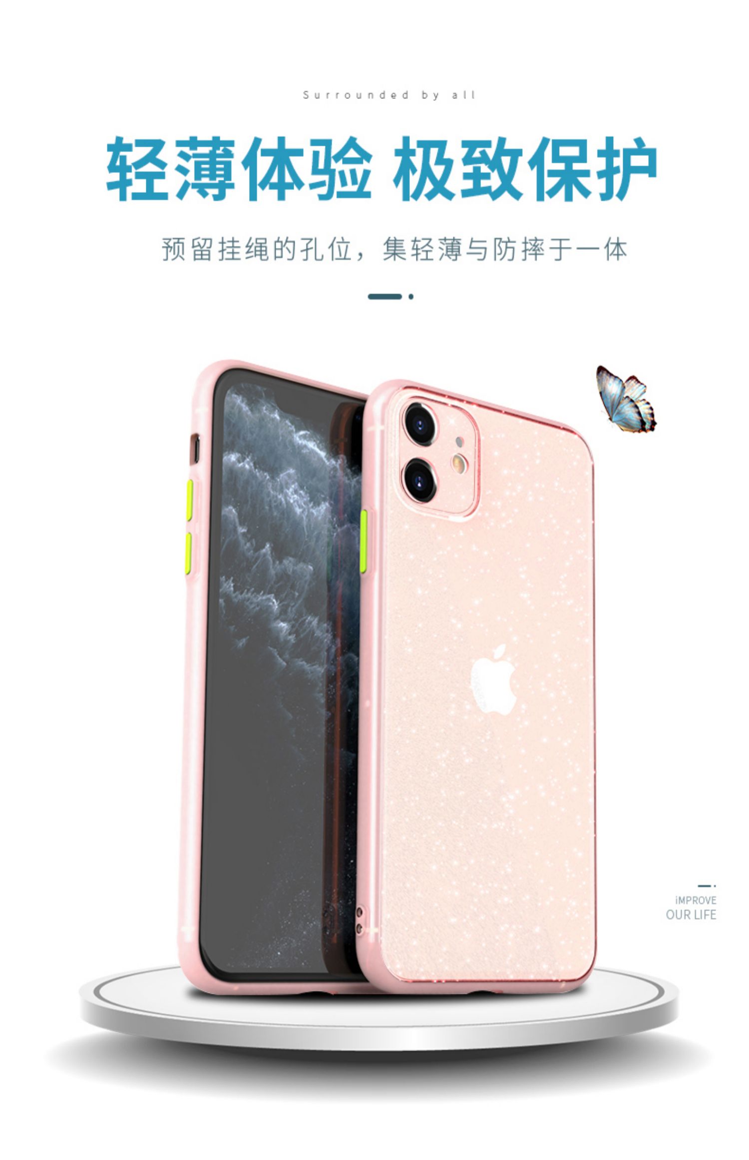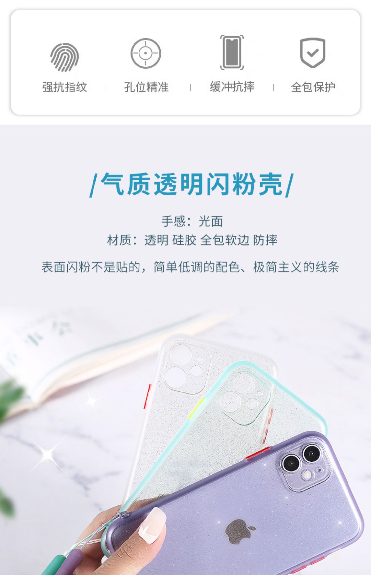 【推荐理由】苹果闪粉手机壳赠送同色挂绳,闪耀宛如星河,星钻般闪耀两眼,集天星光于一体,强抗指纹,孔位精准,缓冲抗摔,全包保护,撞色可拆按键,四种颜色可选!