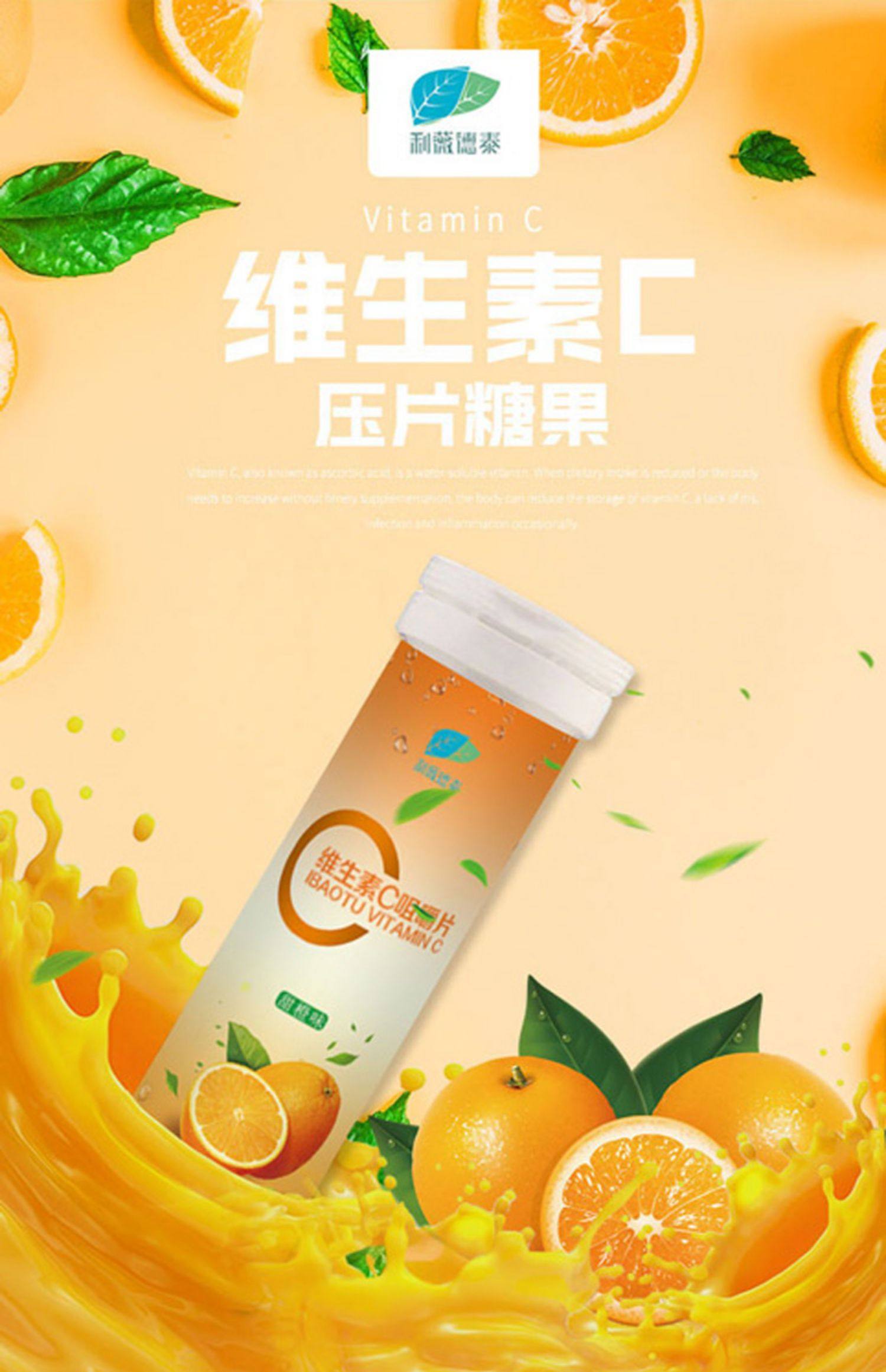【利薇德泰】维生素C压片糖果营养咀嚼片,多C多E多漂亮,酸酸甜甜口感,每天来2粒!美白淡斑,抗衰老,去皱纹,女神必备,每天唤醒生命活力!