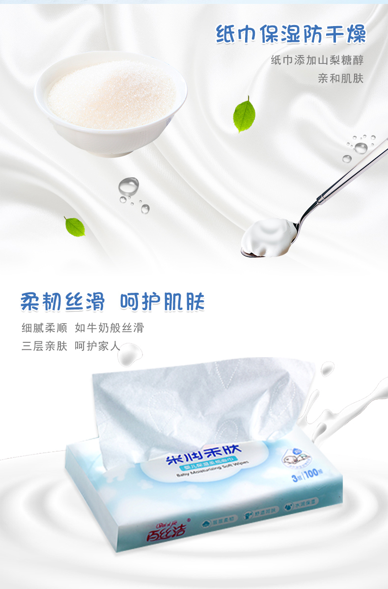 【超值100抽*3包】超柔乳霜柔纸巾,添加乳霜保湿因子,强韧耐拉扯,给与肌肤牛奶般的触感,反复拭擦不泛红,超柔3层加厚,健康到可以吃的柔软纸巾,宝宝舒心,妈妈放心。