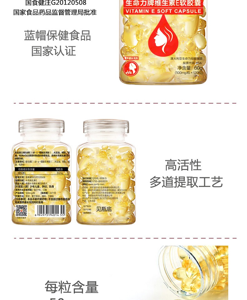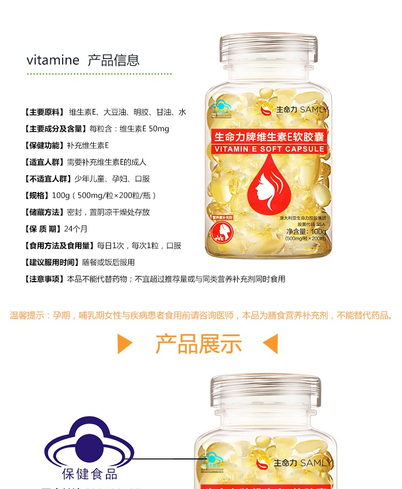【蓝帽认证】内服外用,维生素E软胶囊100粒维e内服外用面部ve可塔VC,焕发肌肤能量!【扫码验真】