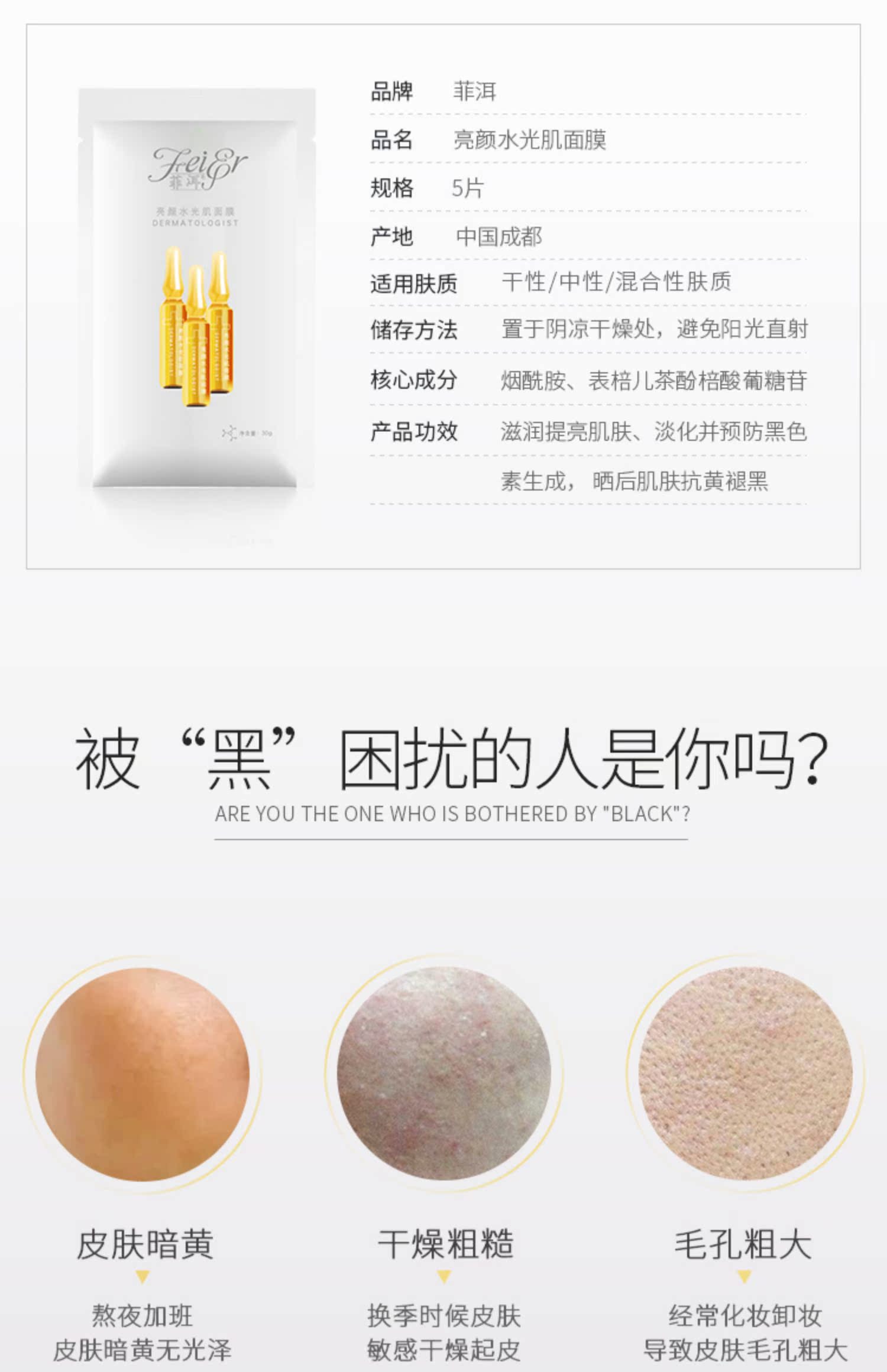 【第二件0元】皮肤暗黄?毛孔粗大?干燥粗糙?菲洱面膜逐层净现,净白透亮,深层补水,高纯度烟酰胺抑制黑色素,调节油脂分泌,收缩毛孔,不含防腐剂以及人工色素,更放心。