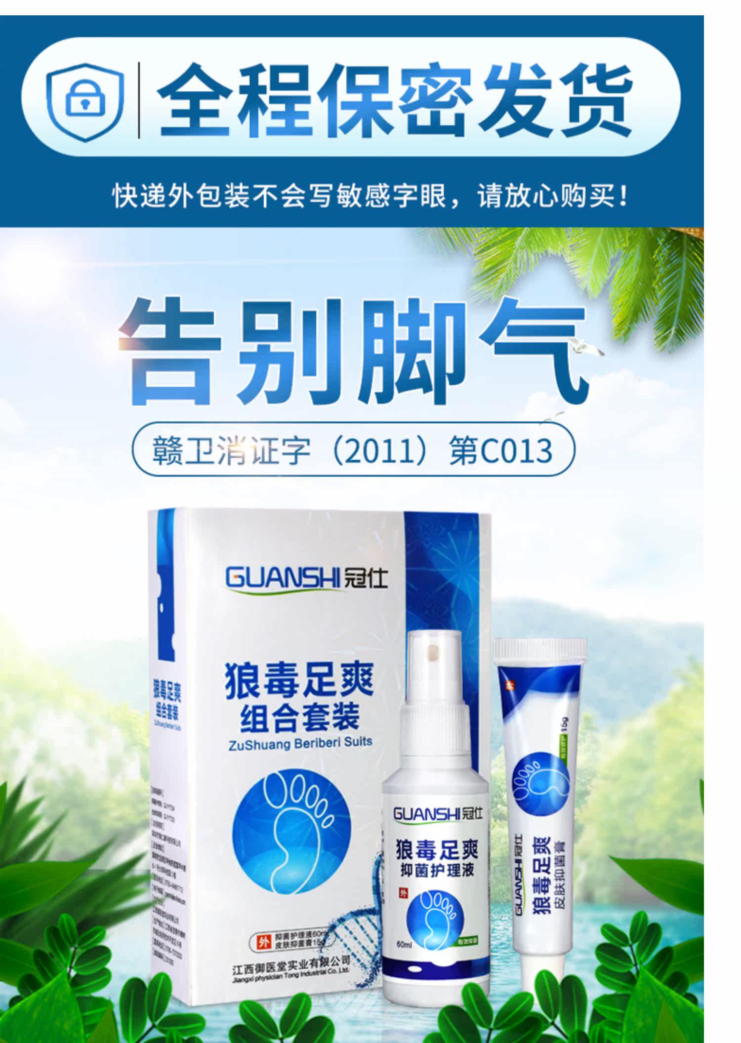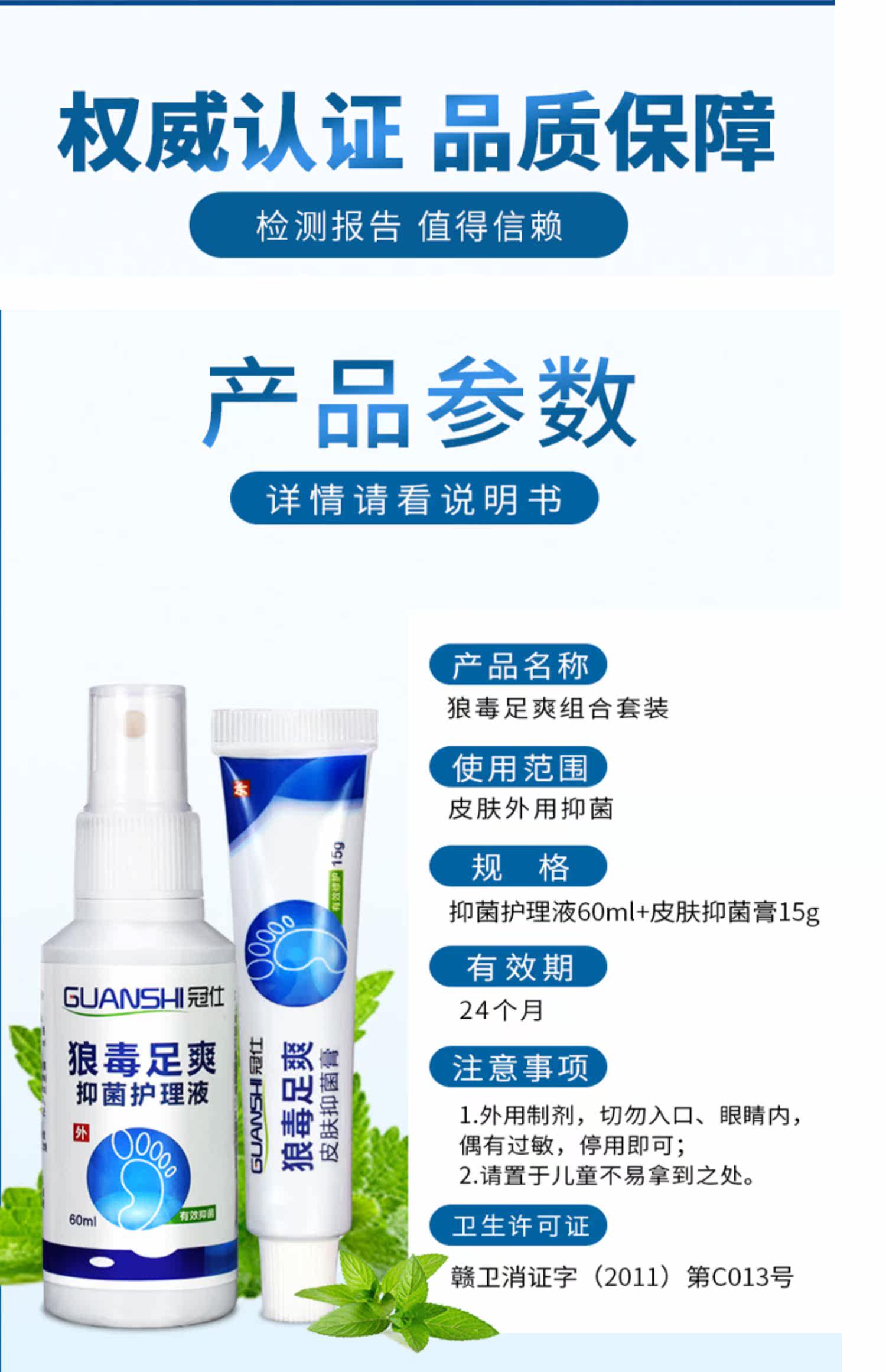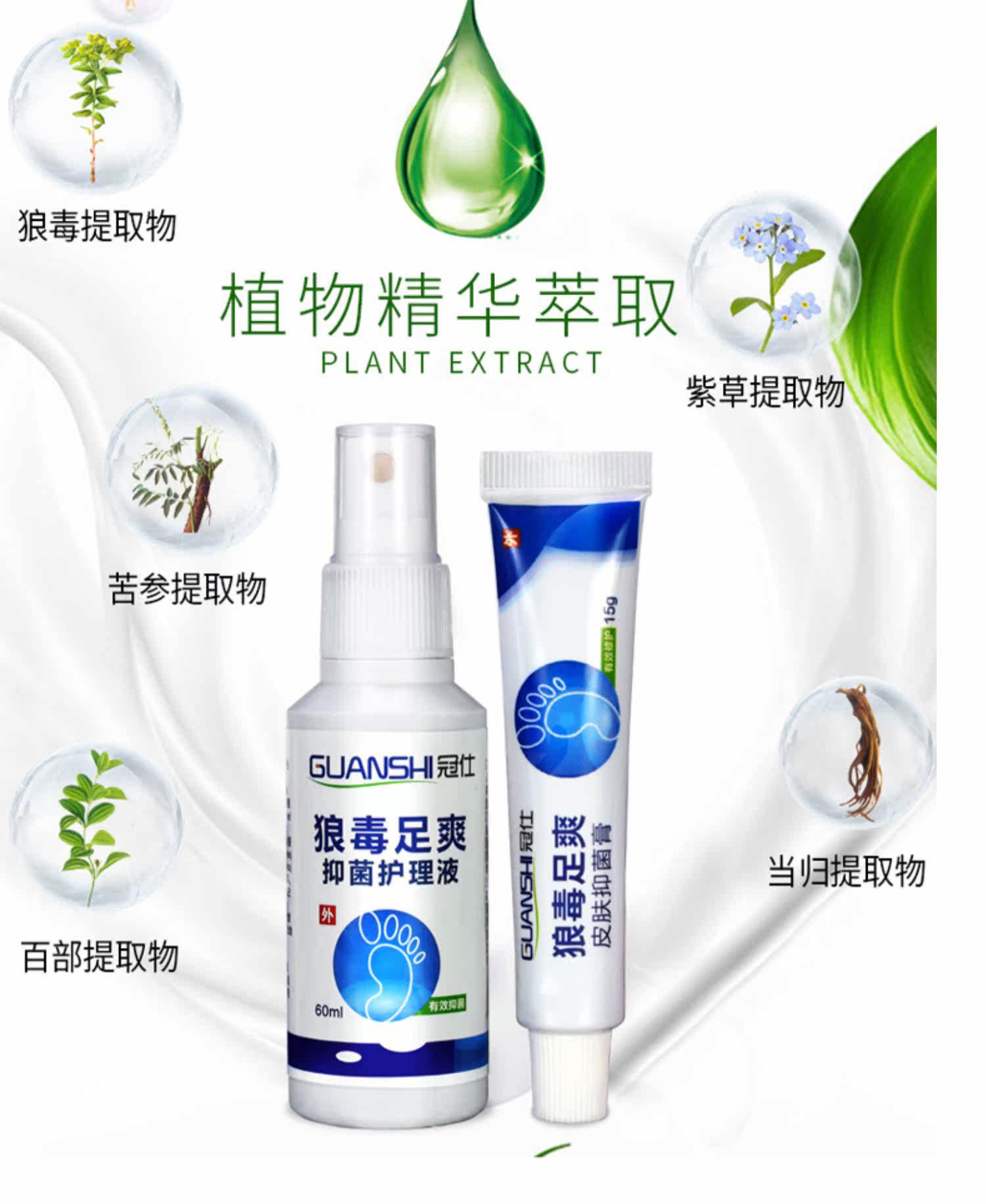 【冠仕】狼毒足爽组合套装,中草药配方,护理液+抑菌膏,一喷一抹更方便,告别脚气瘙痒!