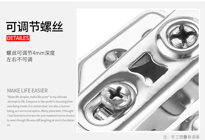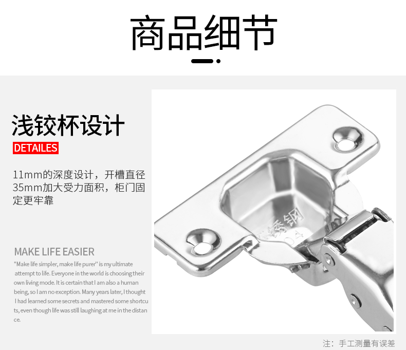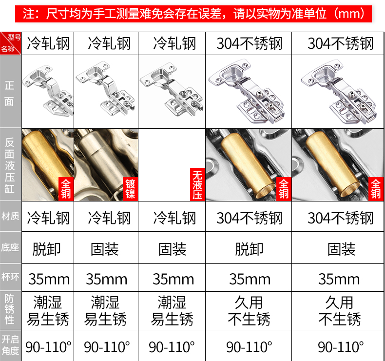 【柜门铰链1只加3只多功能硅胶门吸】304不锈钢质量没的说,六档助臂,用料扎实,手感舒适,阻尼感恰到好处,精致做工,寿命长久。