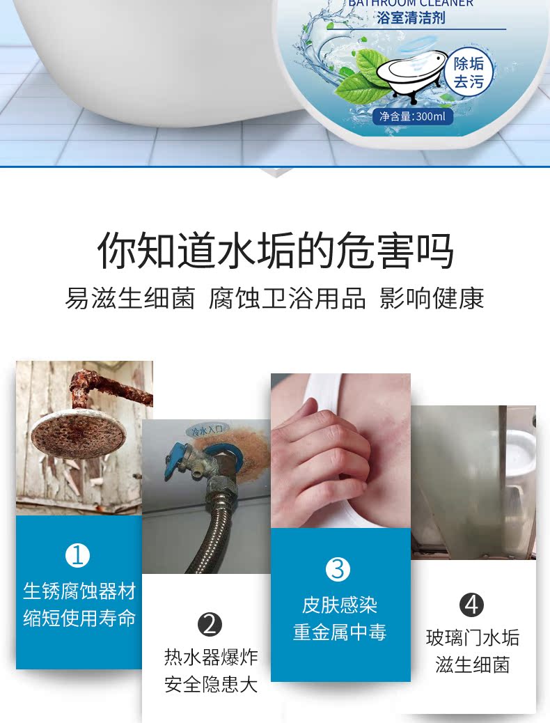 高端品质!居家小能手,水垢清洁剂,浴室玻璃,不锈钢,清洁去污剂,花洒水龙头除垢剂,一喷等几分钟,在用水冲下,松瓦解污垢,效果非常好【赠运费险】