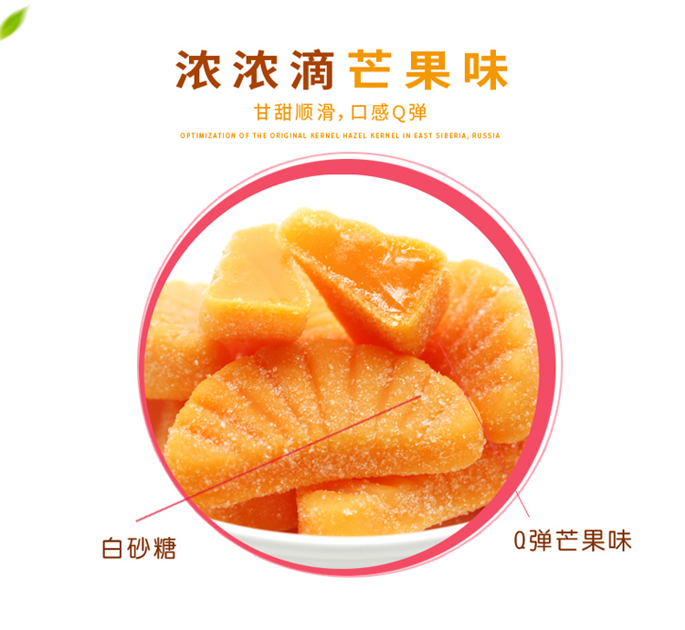 俄罗斯进口,浓浓滴芒果味,精选食材,袖珍小巧,果味香浓,Q弹爽口,闲暇之时,美味共享!