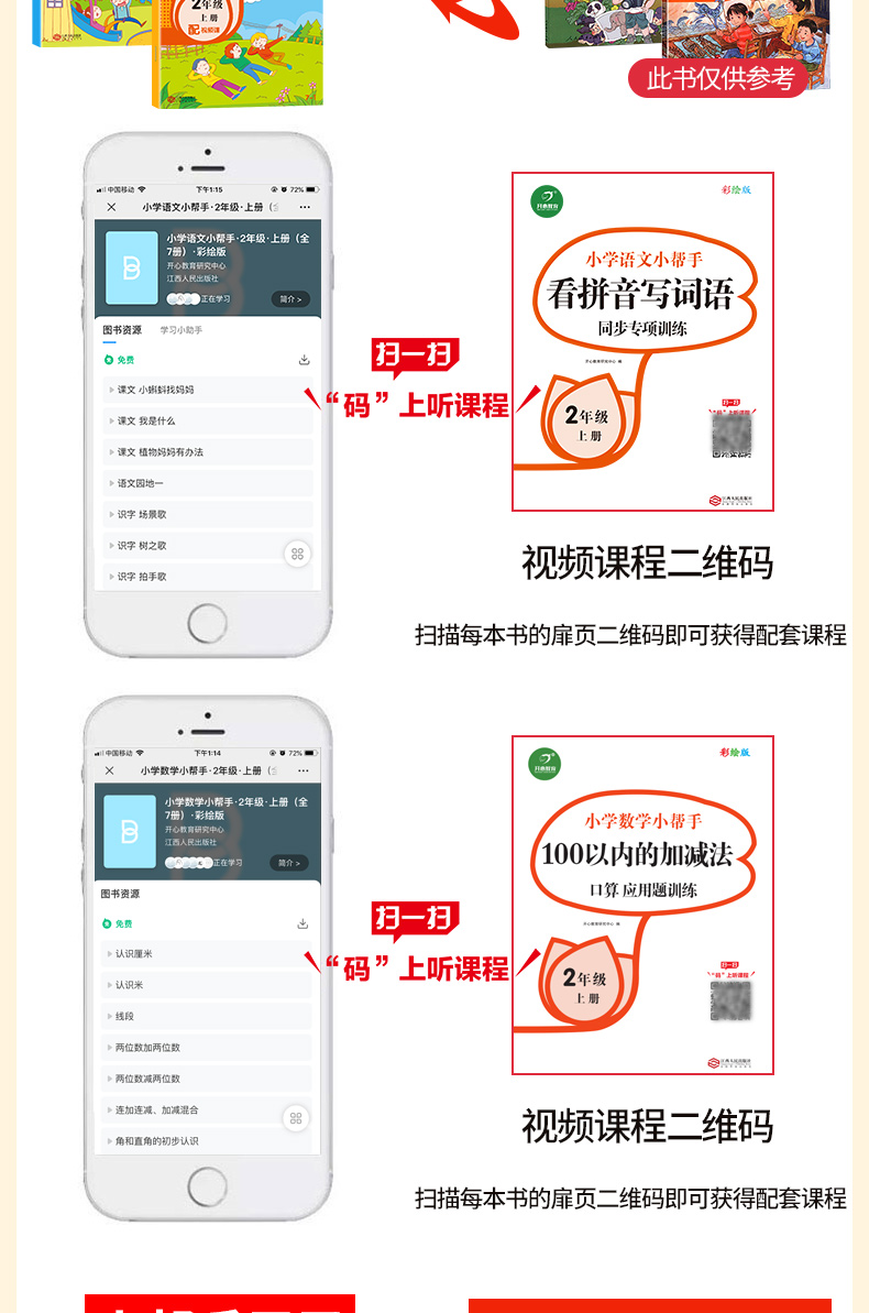 二年级同步训练,语文看图说话,词语写句子,数学同步计算练习,配视频课程,有效提高孩子学习成绩,让家长不在烦恼!