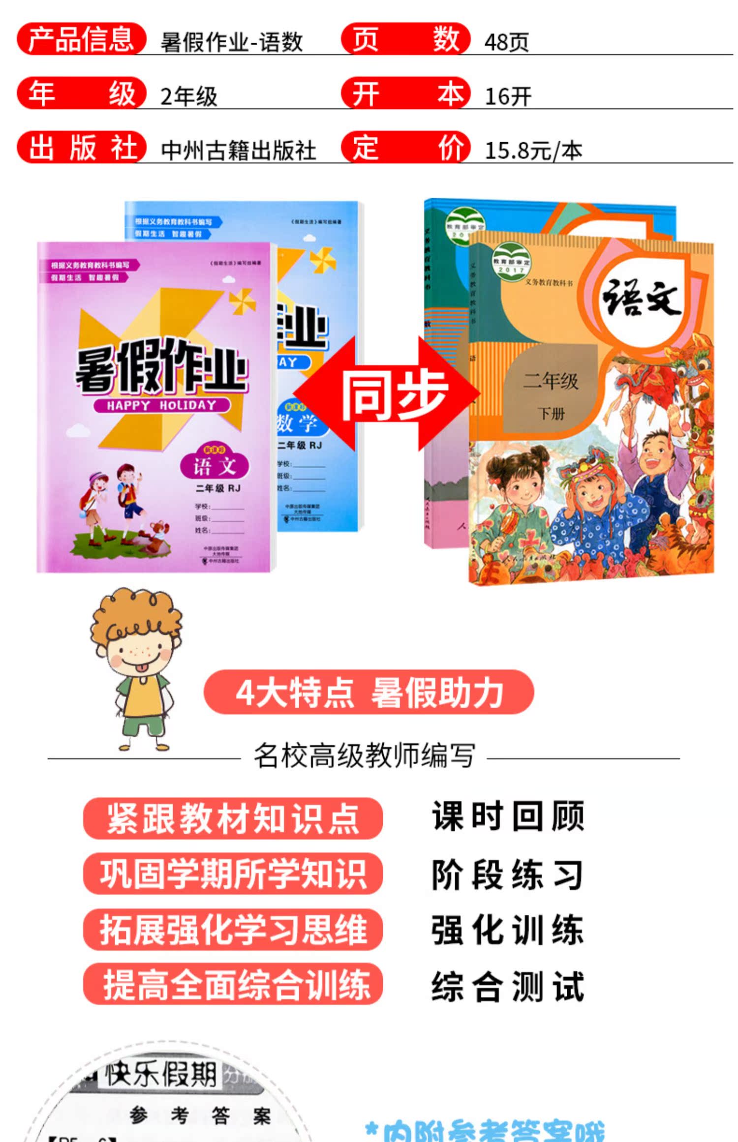 课本同步,二年级语数暑假作业,班主任推荐!印刷清晰,内容全面,为孩子打好扎实基础!
