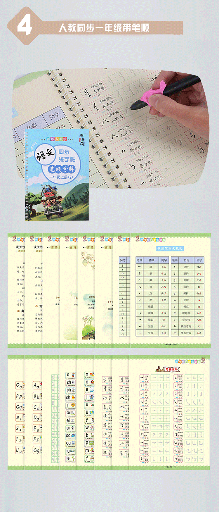 【买一本送10只笔芯一只笔一只握笔器】同步语文教材课本,2020新版,彩绘注音,部编人教版,内容丰富,课本生字同步练字帖,加厚纸板字迹自动消失可反复练习,妈妈的精明选择!