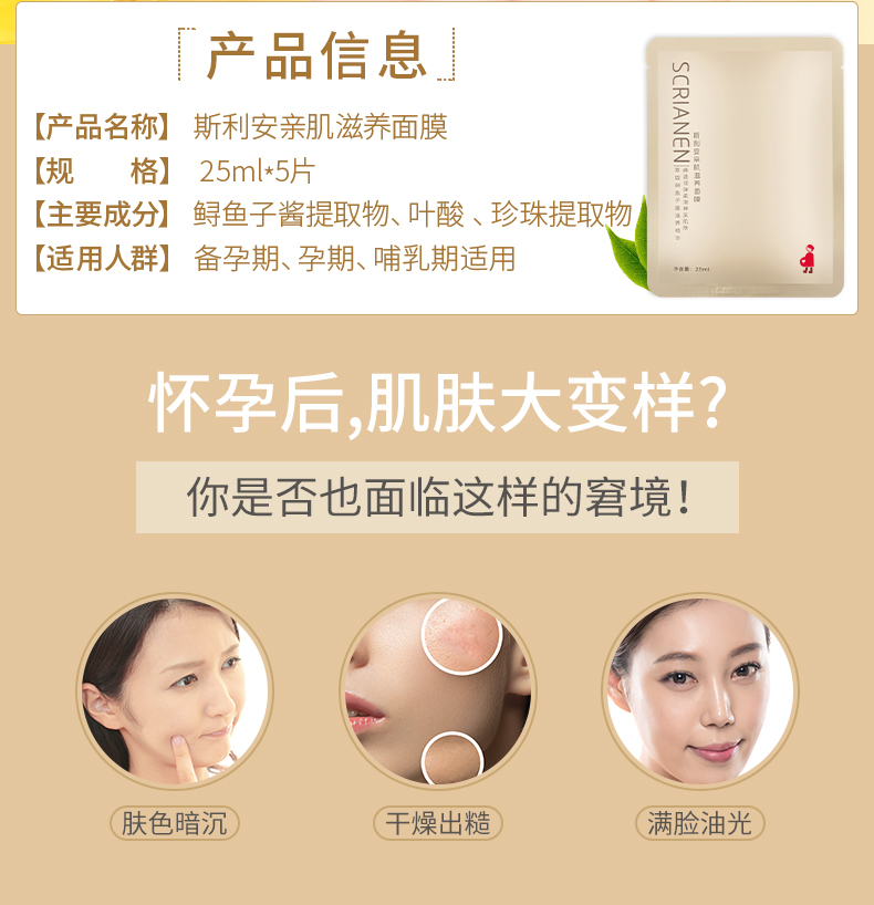 补水小心机,孕期也美腻,斯利安亲肌滋养面膜,鲟鱼子酱+叶酸+珍珠提取物,锁水保湿,润泽鲜肌,让肌肤弹、嫩、滑,孕肌水嫩嘭嘭嘭【赠运费险】