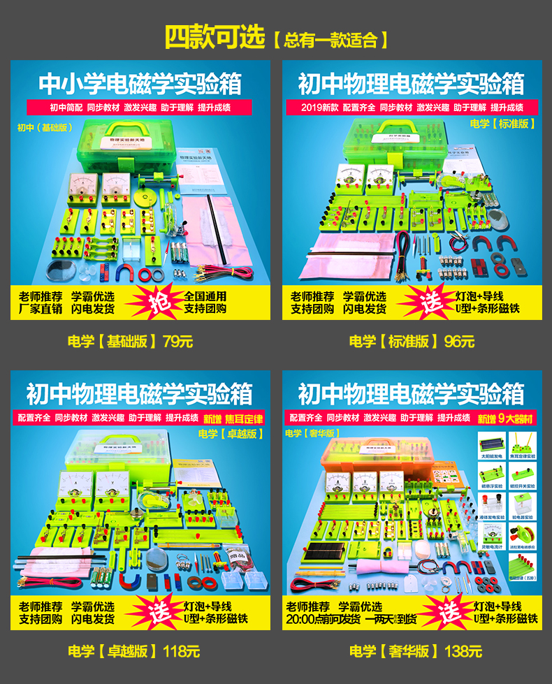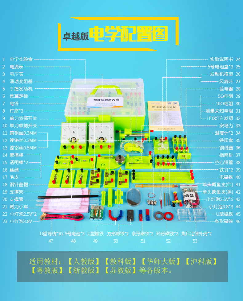 【小学初中物理电学全套实验器】【学霸必备之星】名师推荐适用各版本教材,涵盖初中课本所有物理实验+几十项扩展实验,50多种实验器材,书本知识实物化,快乐做实验疯狂长知识!让孩子更进一步