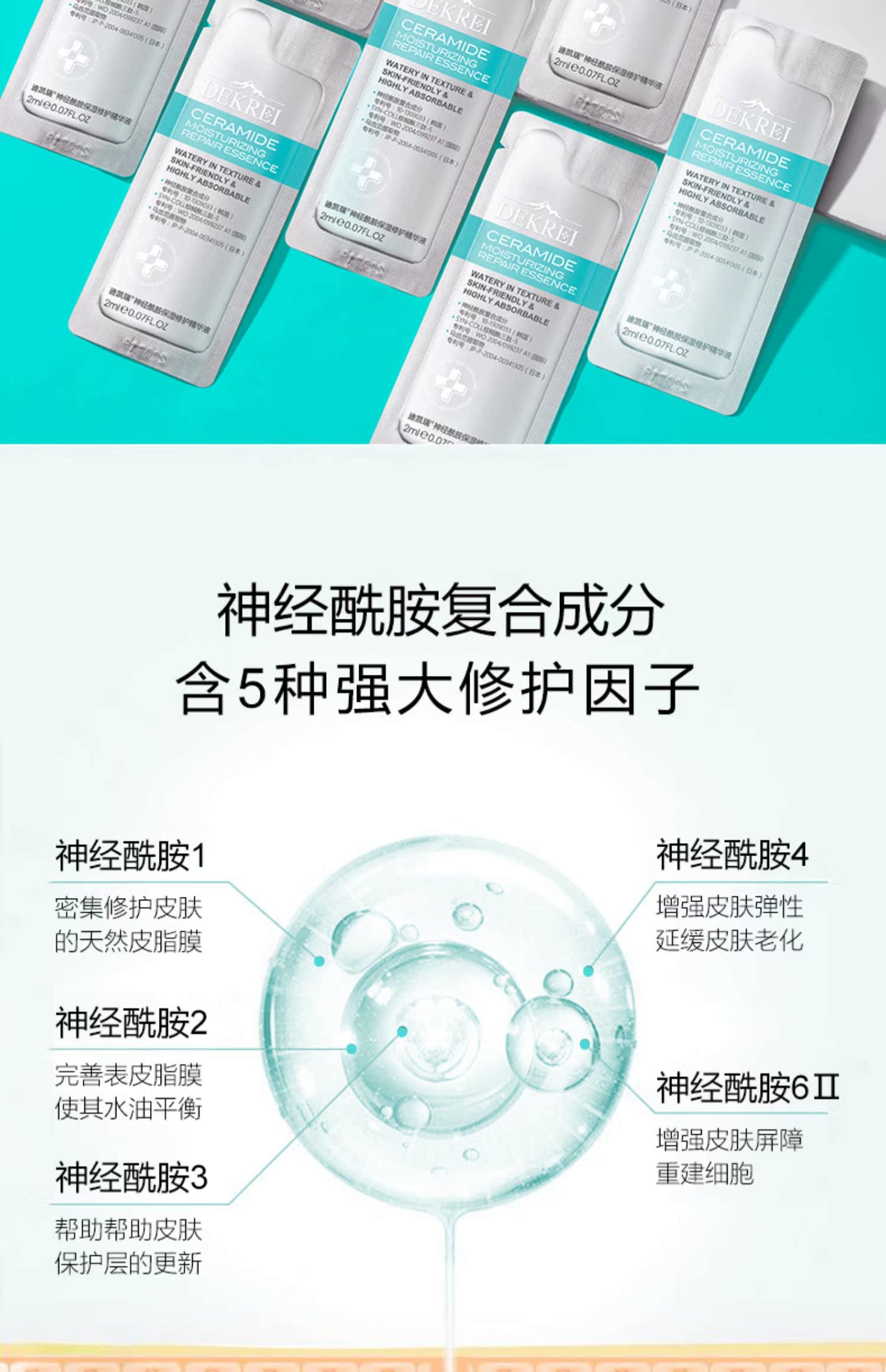 【一盒30片】5重神经酰胺密集修护肌肤屏障,3项国际发明专利(韩国神经酰胺复合成分、棕榈酰3肽-5,日本马齿苋专利)6无添加无色素,无香精,无荧光剂,舒缓保湿,修护滋养,女神冻龄的秘密。