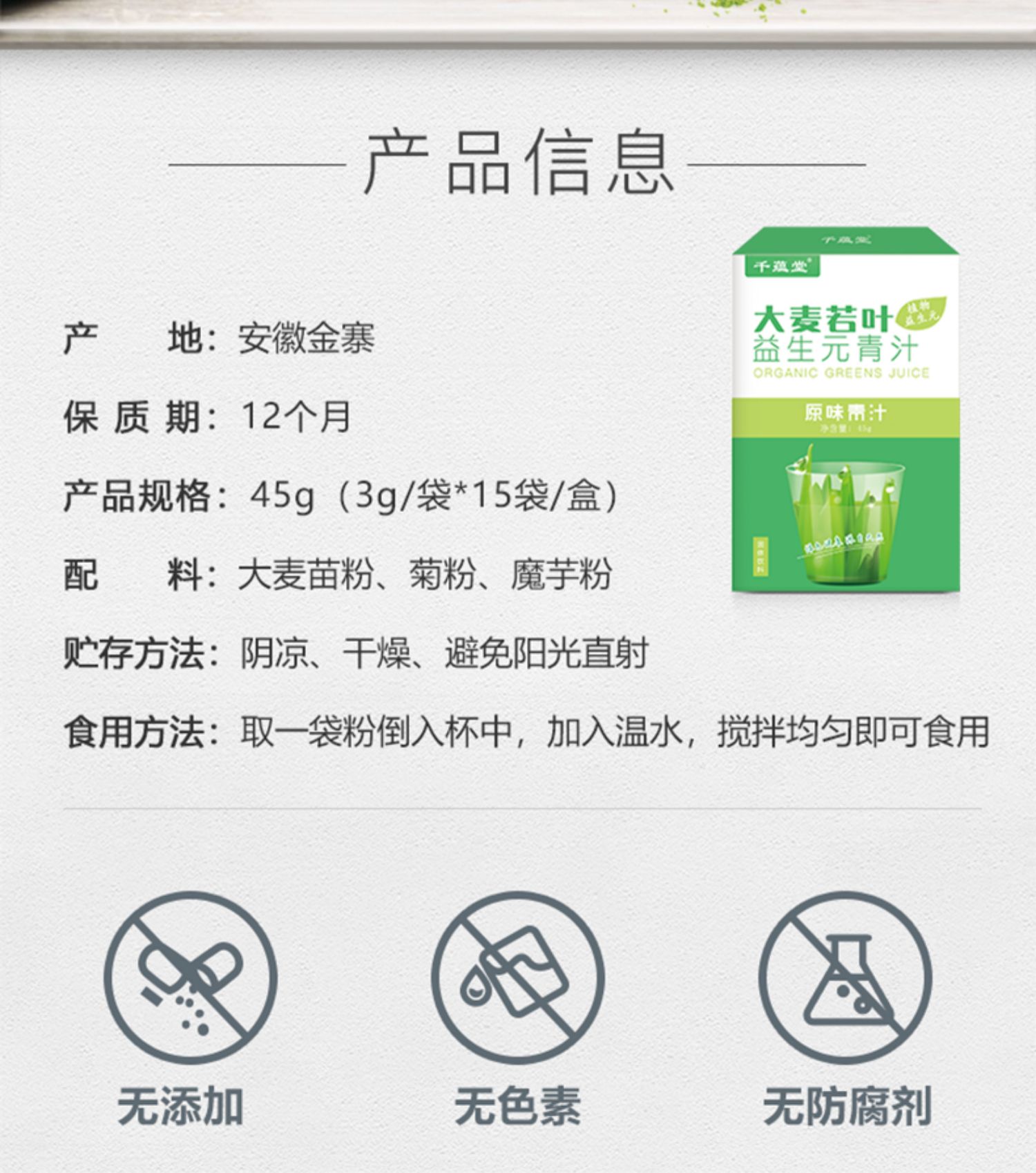 【9.8代餐粉】大麦若叶青汁粉【千蕴堂】大麦若叶青汁粉!超丰富膳食纤维,调理肠胃,口感细腻,易吸收!每天1包好贴心,让不爱吃蔬菜的你营养更均衡!