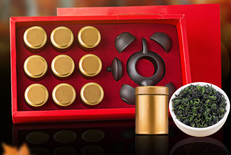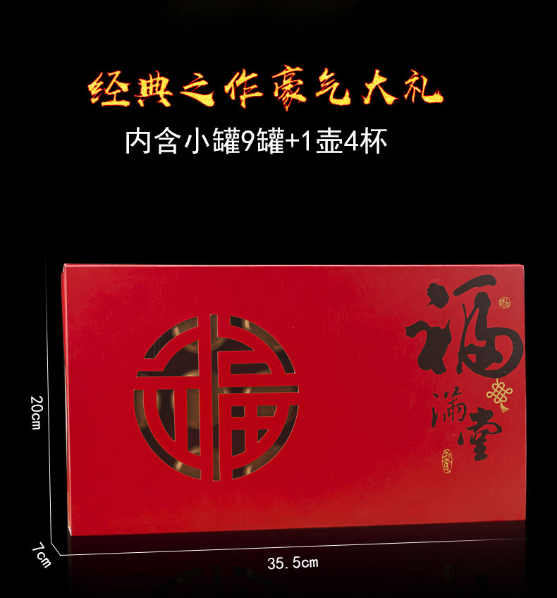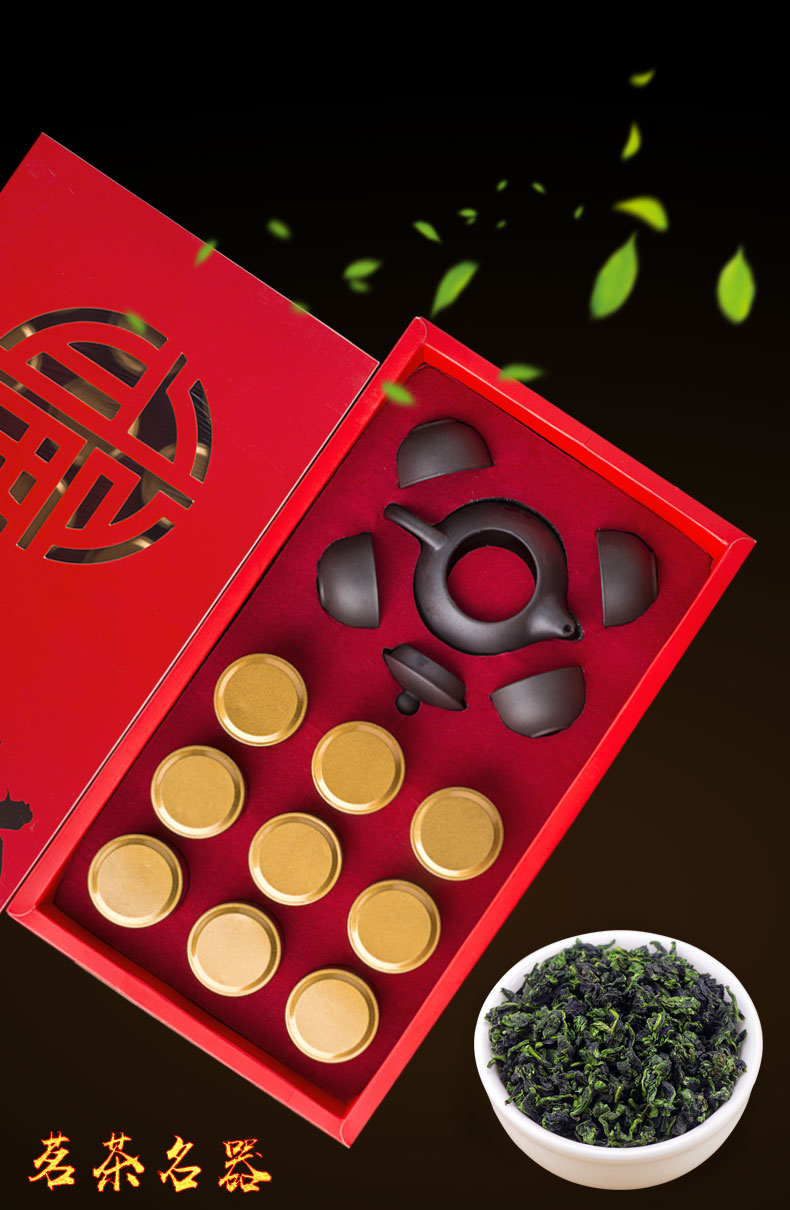 【赠运费险】小金罐茶叶礼盒装送一套茶具,香浓耐泡,茶园直供,传统工艺制作,鲜爽、香浓、醇厚,茶香持久,独立包装,9罐茶叶+1壶+4杯子,配套礼盒,手提袋~