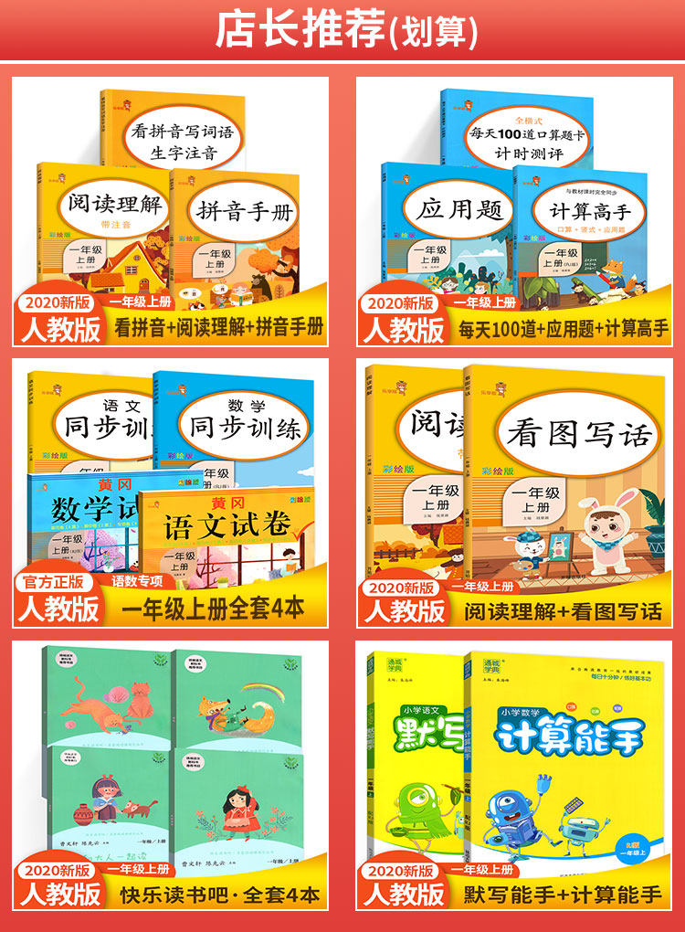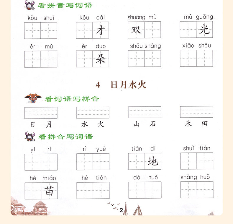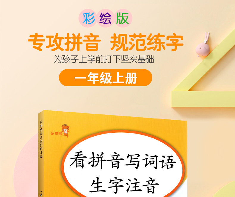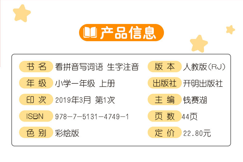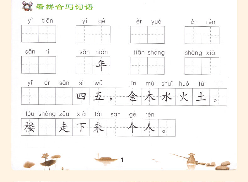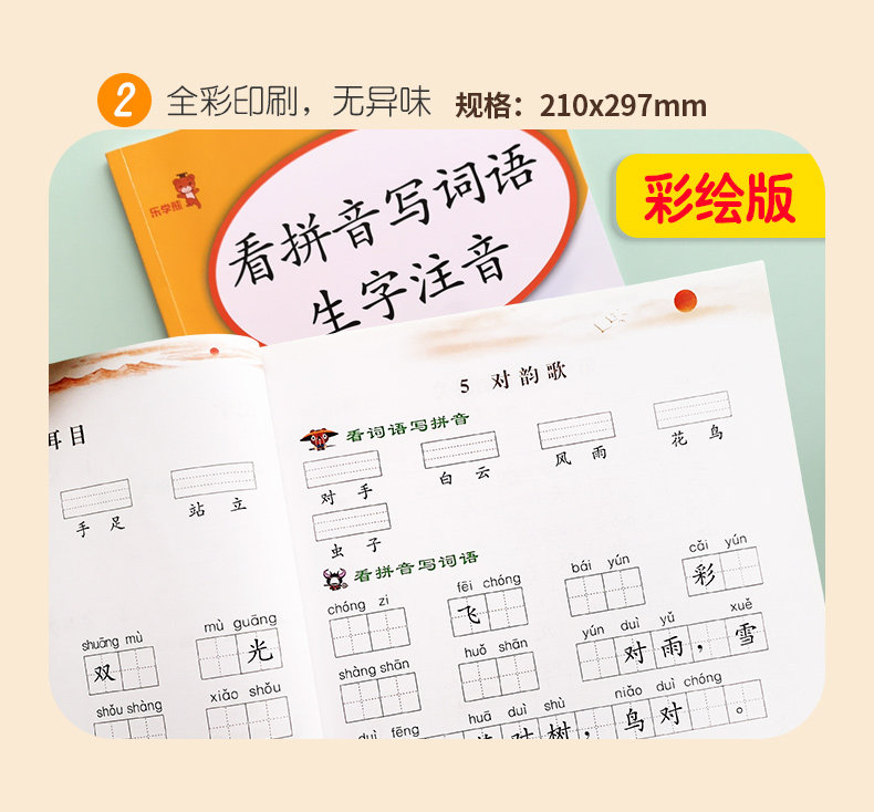 2019秋季人教版小学一年级【儿童寒假读物】与教材同步,看拼音写词语、生字注音,彩绘版大字体,不累眼,老师推荐,性价比超高。
