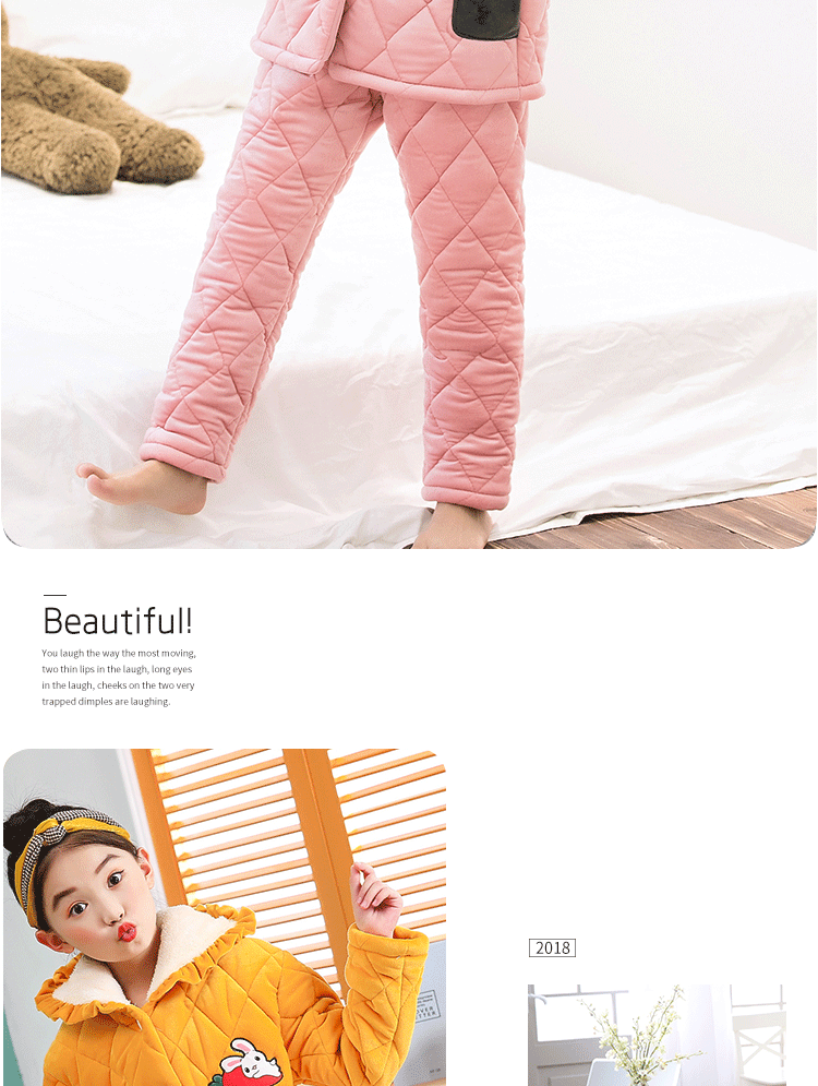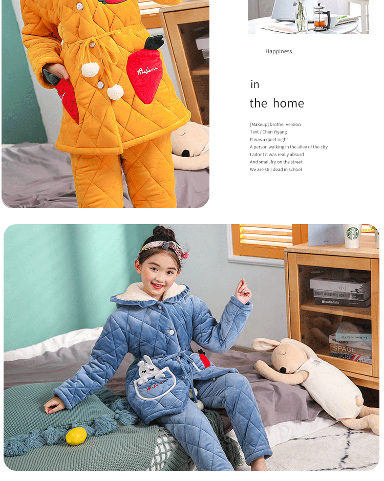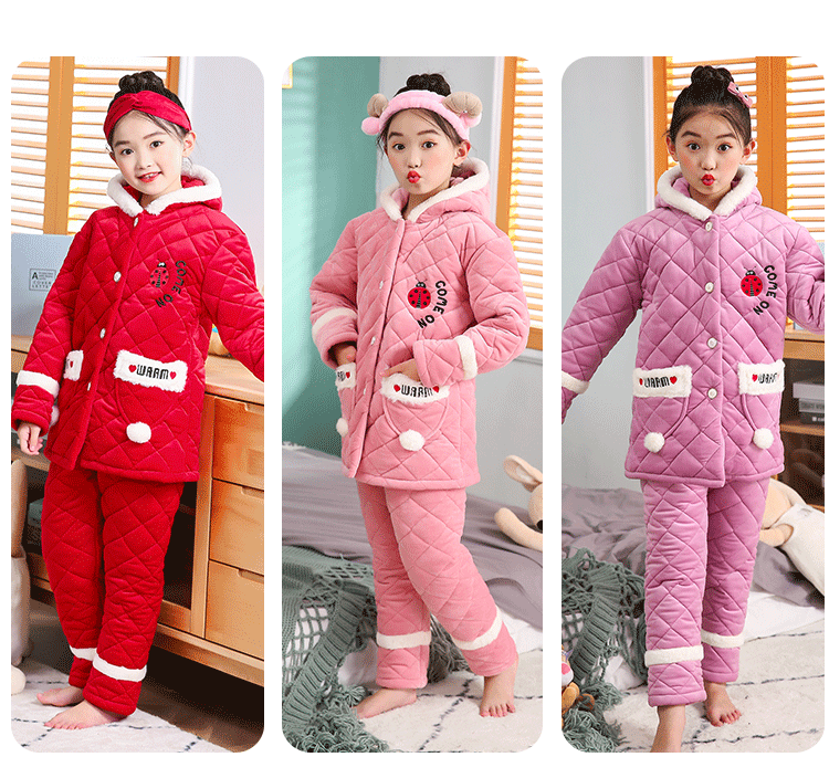 冬季加绒加厚款儿童夹棉睡衣,优质珊瑚绒面料,亲肤舒适,柔软细腻,保暖性好,多色多款可选,赠运费险。