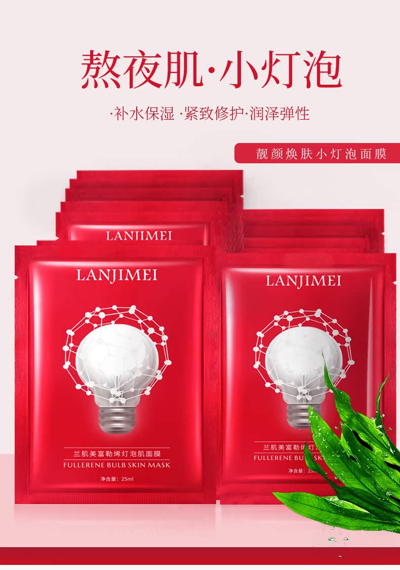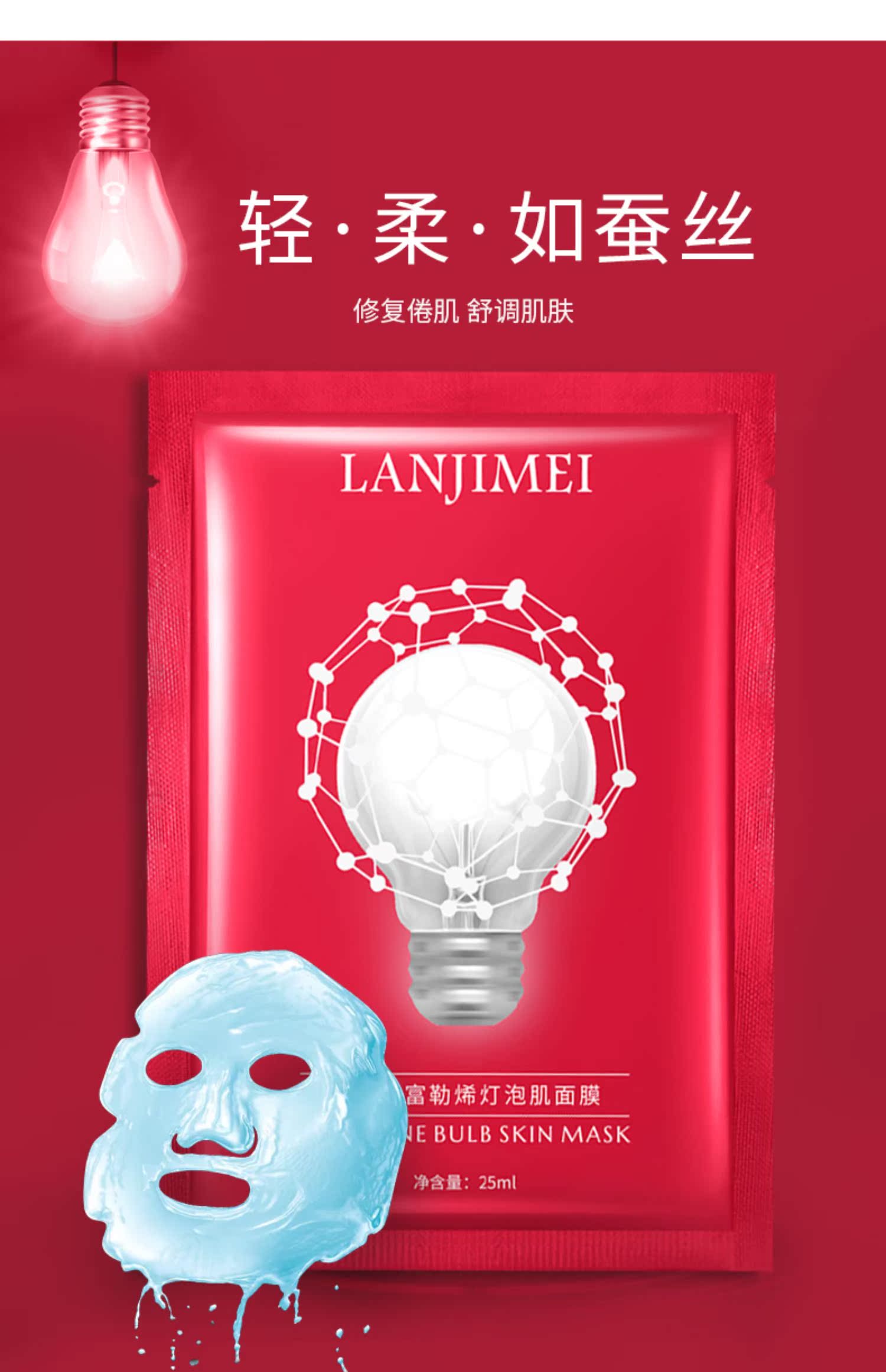 兰肌美富勒烯灯泡肌面膜,胶原蛋修复,重焕健康细致,舒缓修护,安抚肌肤小情绪,焕亮肌底,细致毛孔,舒缓抗敏保湿补水,深入滋养。适合任何肌肤,超级好用!