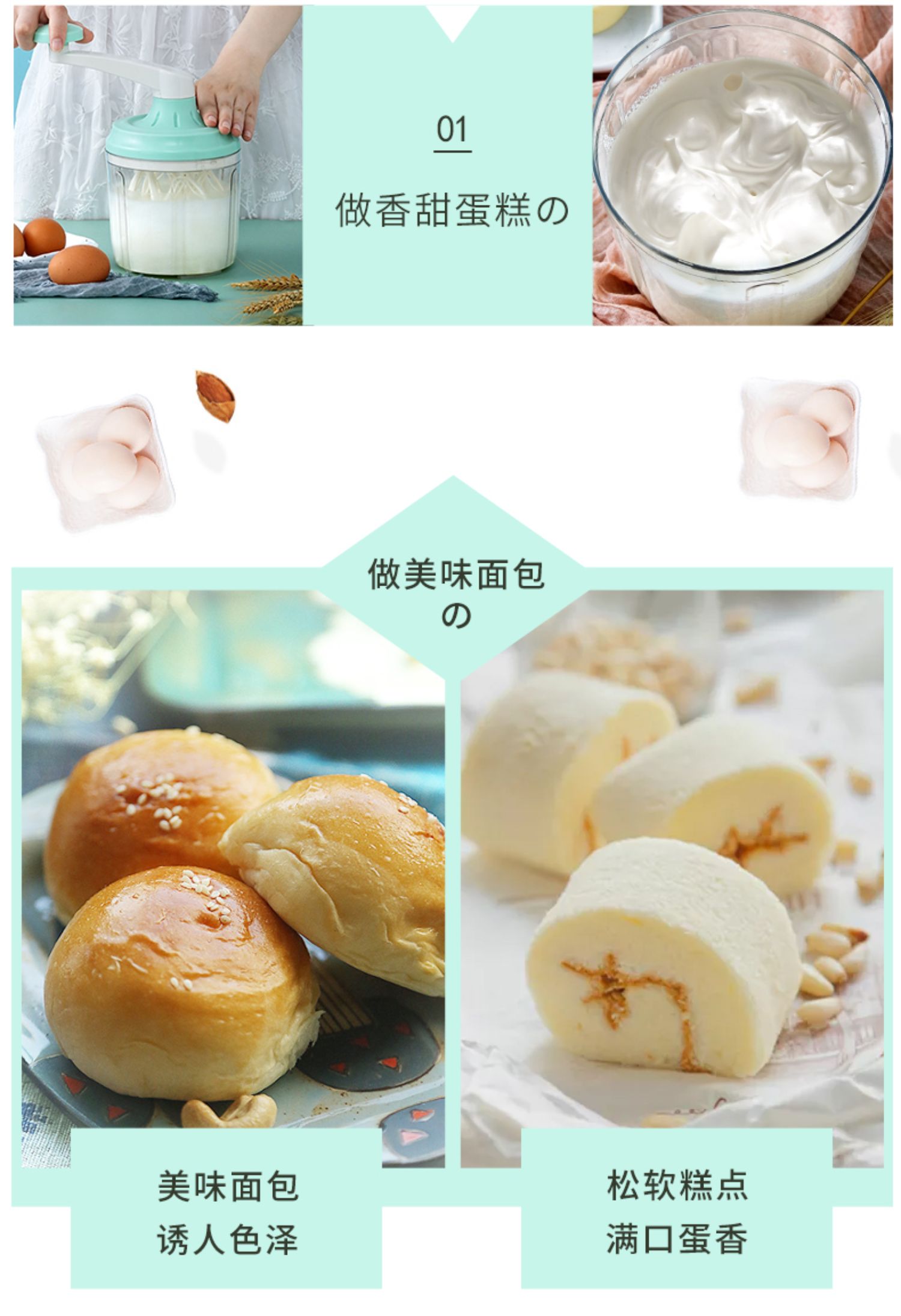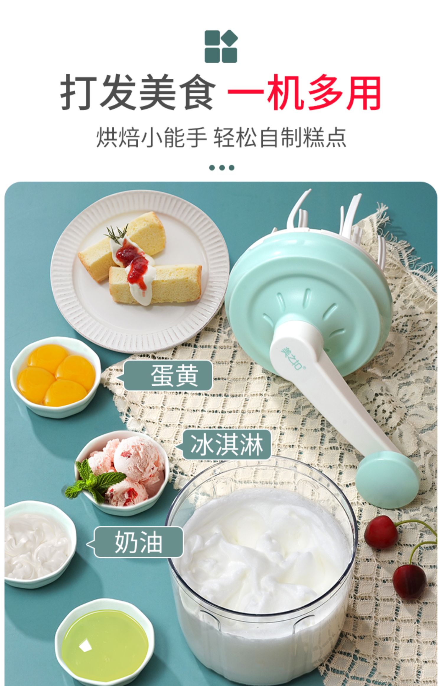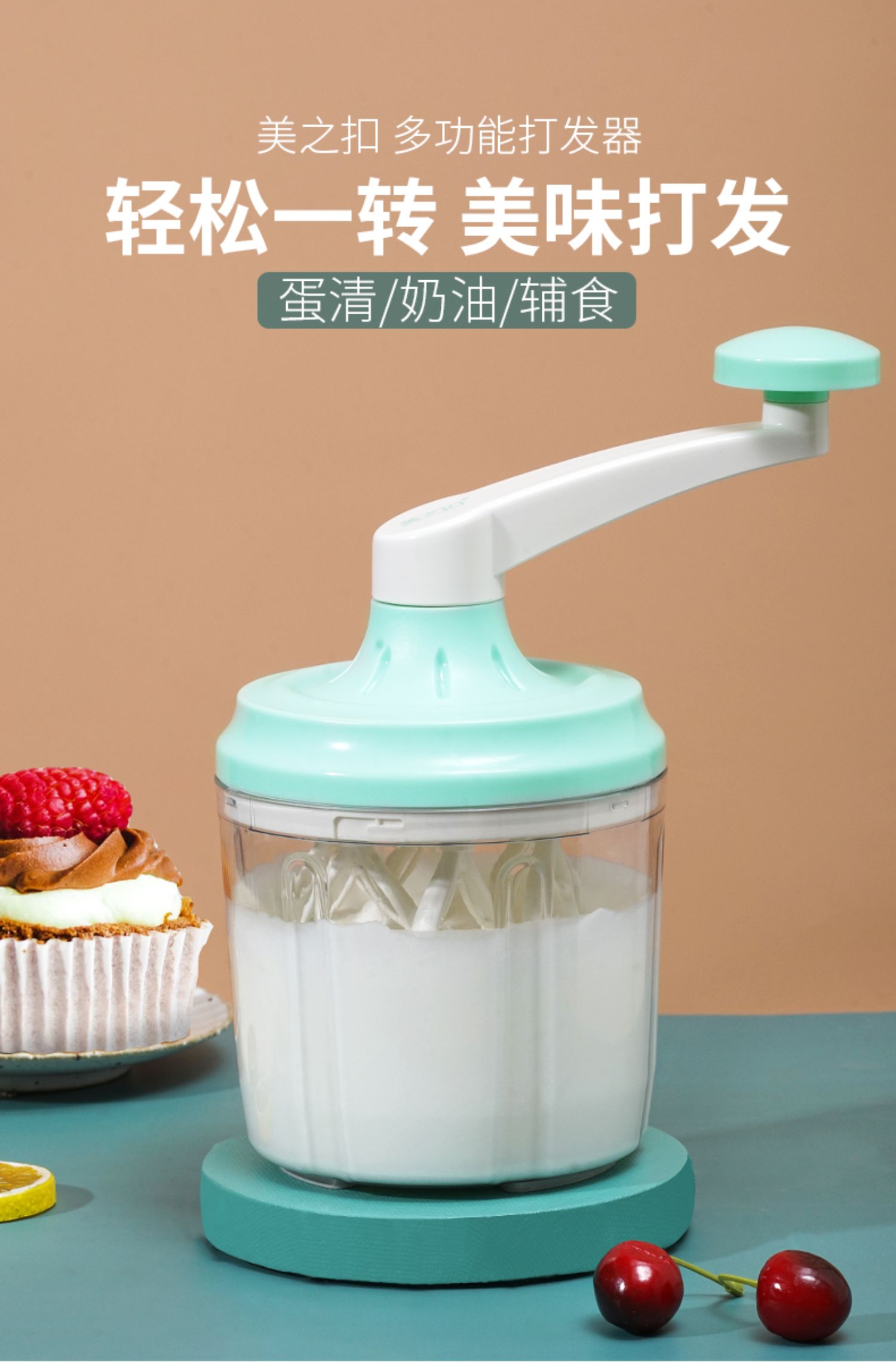 【新款来袭,手动打蛋器,快速40秒打发,比电动的还要快10秒】更能亲子互动,一机多用,打面糊、打奶油、打鸡蛋、搅拌都可以,轻松烘焙,享受生活【赠运费险】