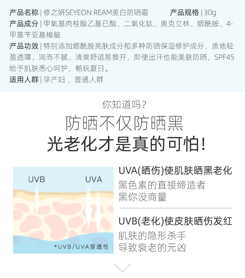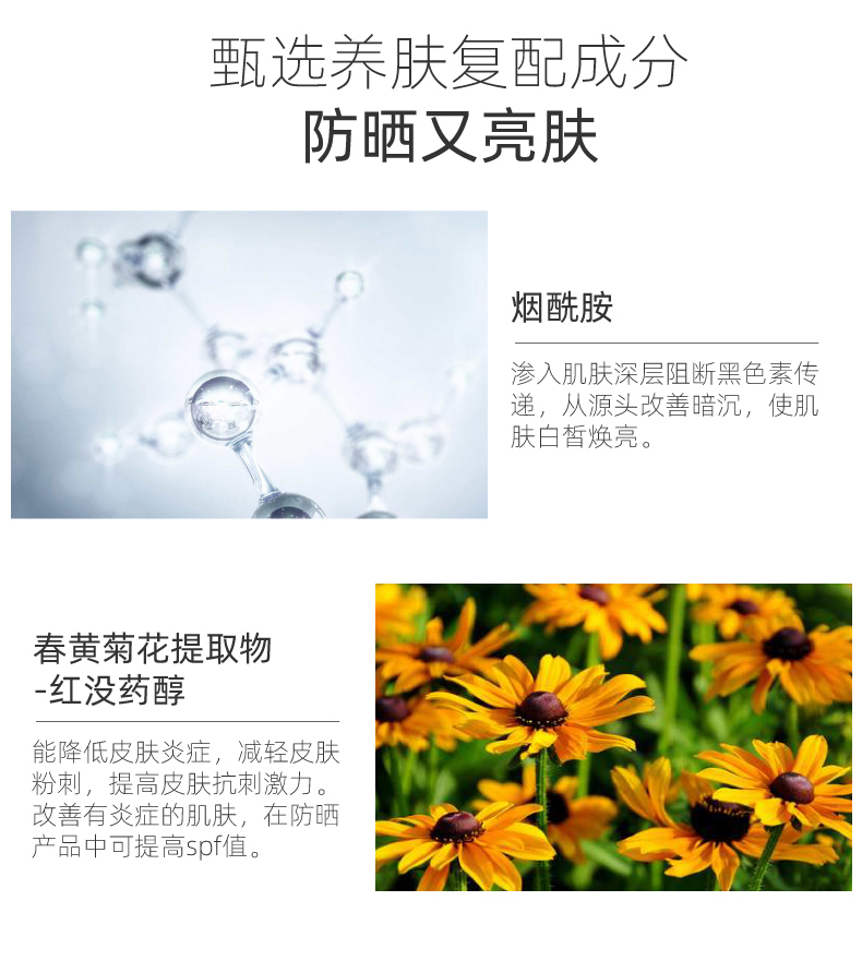 【修之研热销爆款,烟酰胺成分】烟酰胺渗透肌肤深层阻断黑色素传递,从源头改善暗沉,使肌肤白皙焕亮,春黄菊花提取,提高皮肤spf防晒力,修复受损老化皮肤细胞,深层滋养,防晒美白,内外兼修。