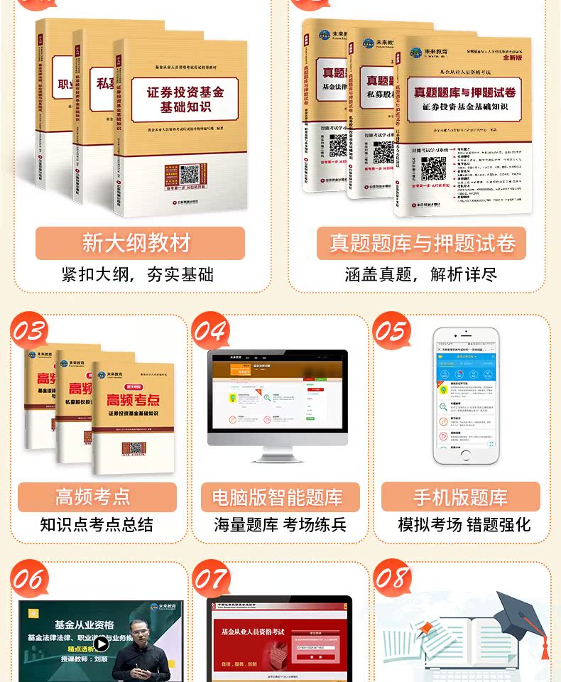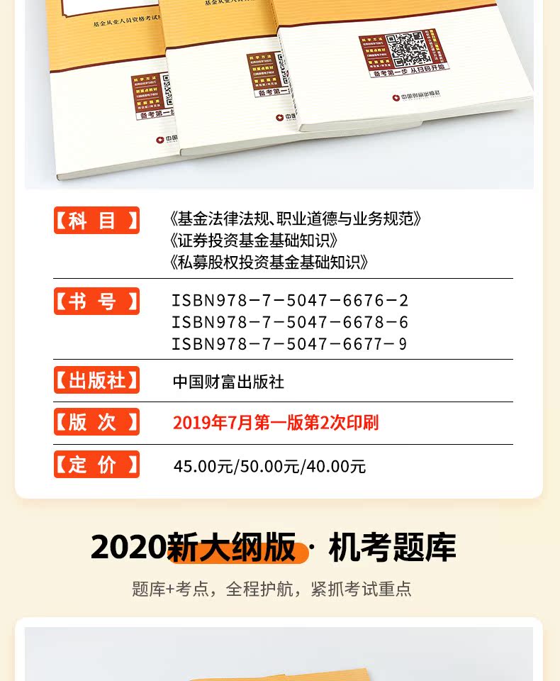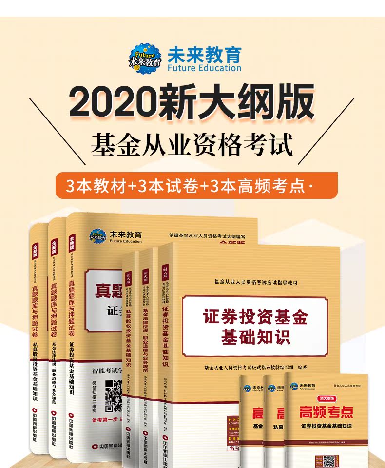 20年新大纲基金业从业资格考试教材,官方教材套装:教程+试卷+真考系统+智能题库+视频课程,另外再赠送高频考点和电子版资料,新大纲专用版,轻松拿证!助您考试通关,一套过关轻松拿证,历史新低价仅39.9