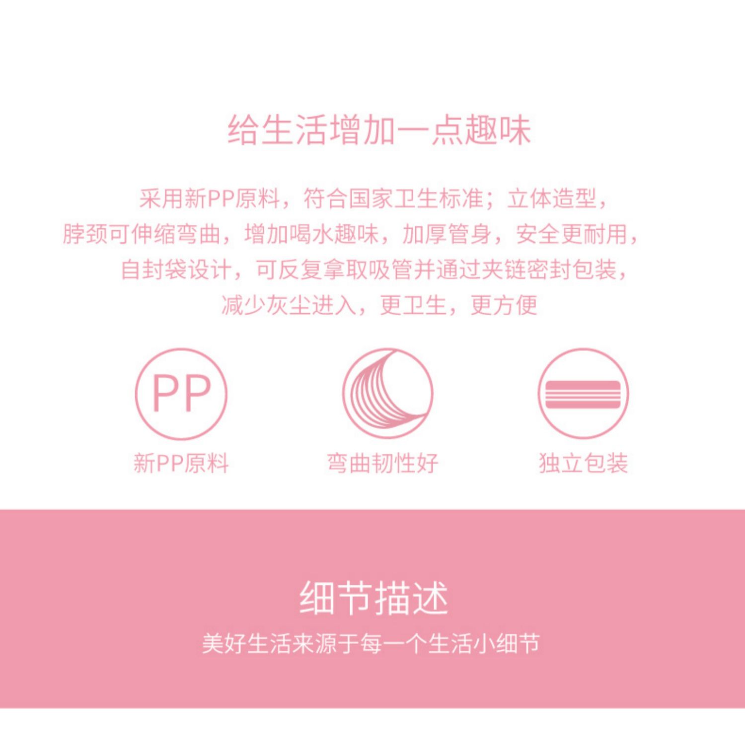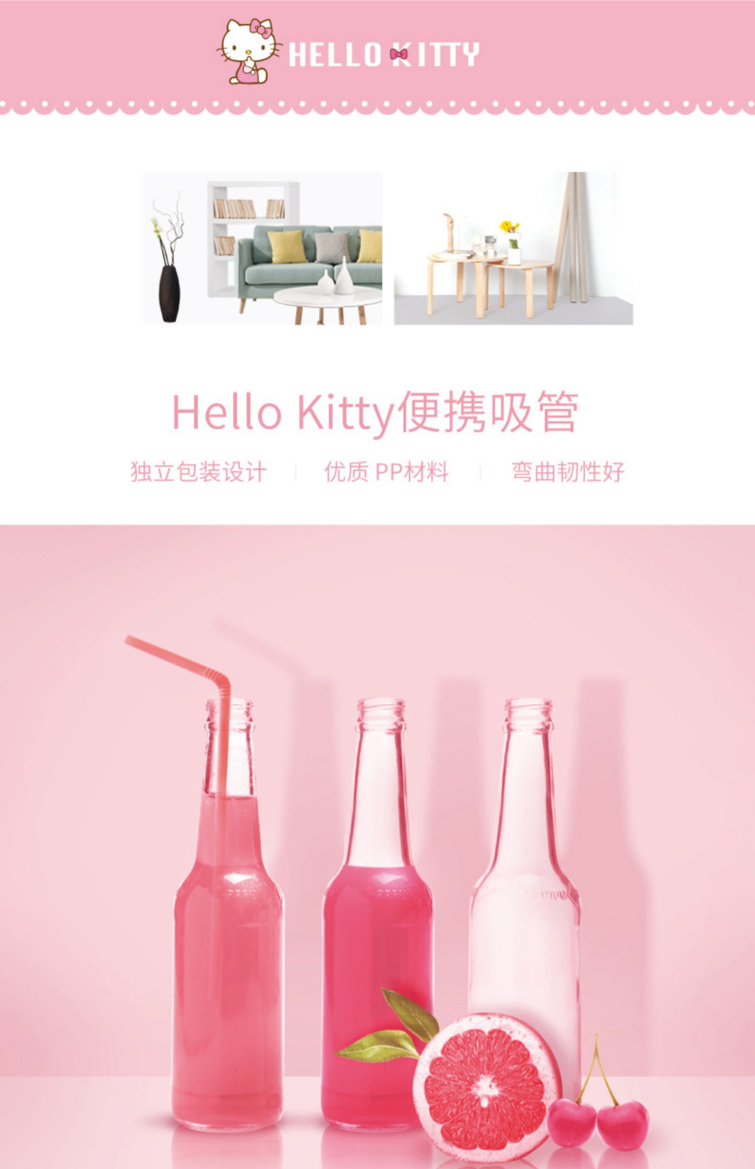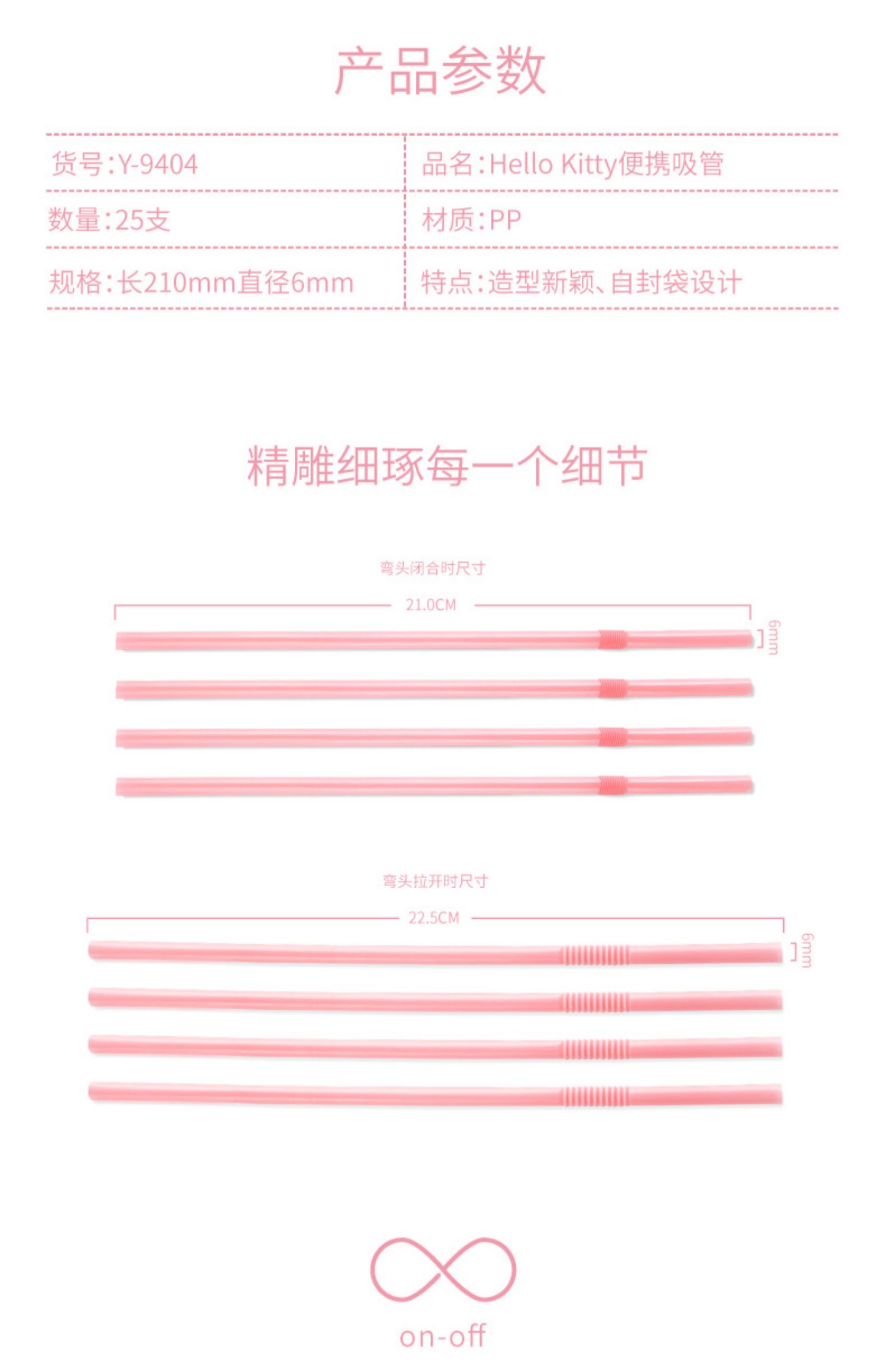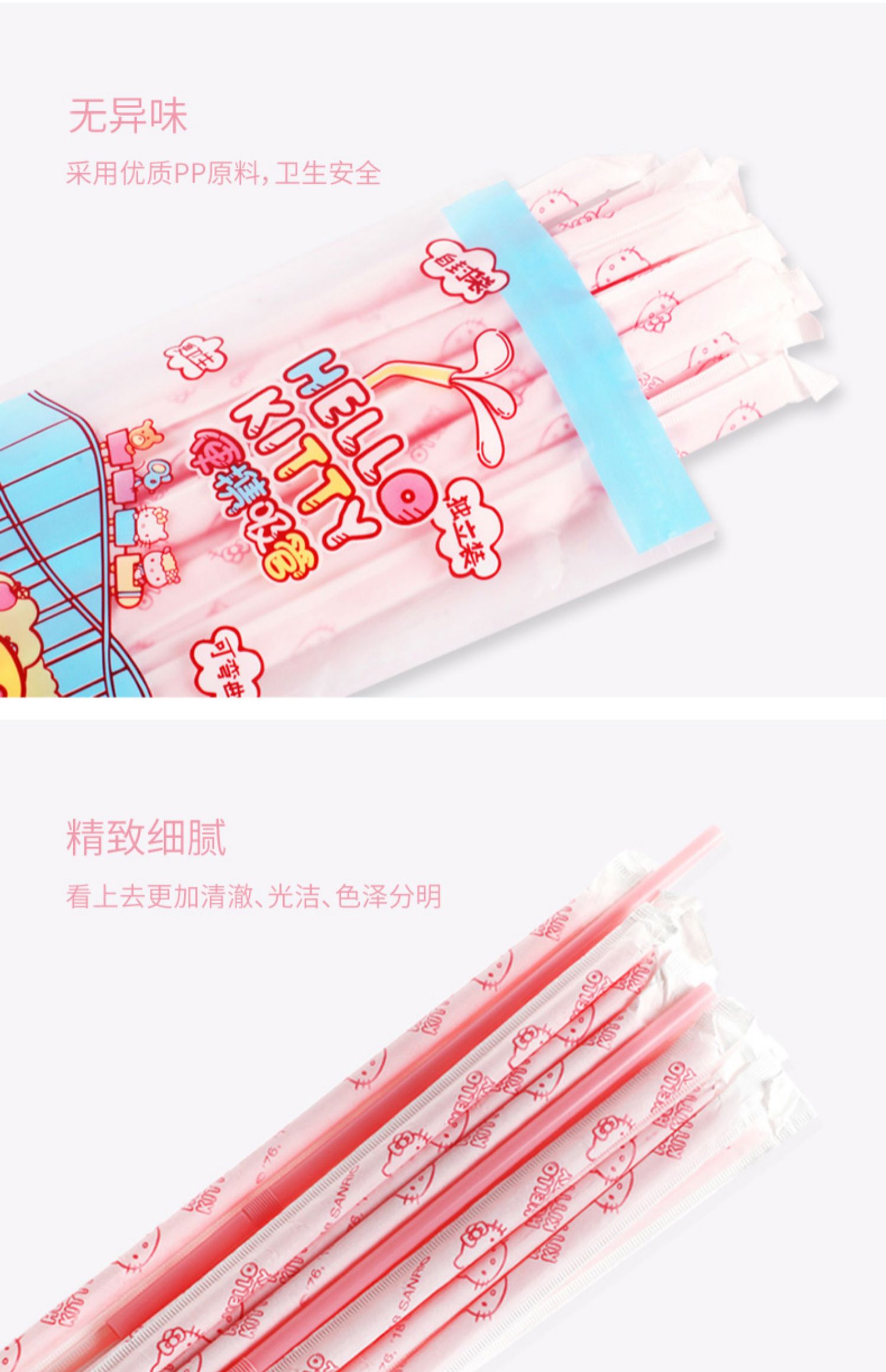 HelloKitty便携式吸管,采用优质PP材料,弯曲韧性好,独立包装设计,便于外带使用,更卫生,美好生活来源于每一个生活小细节。
