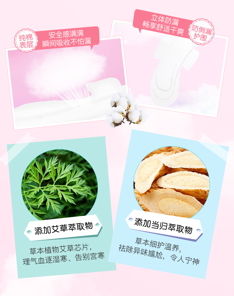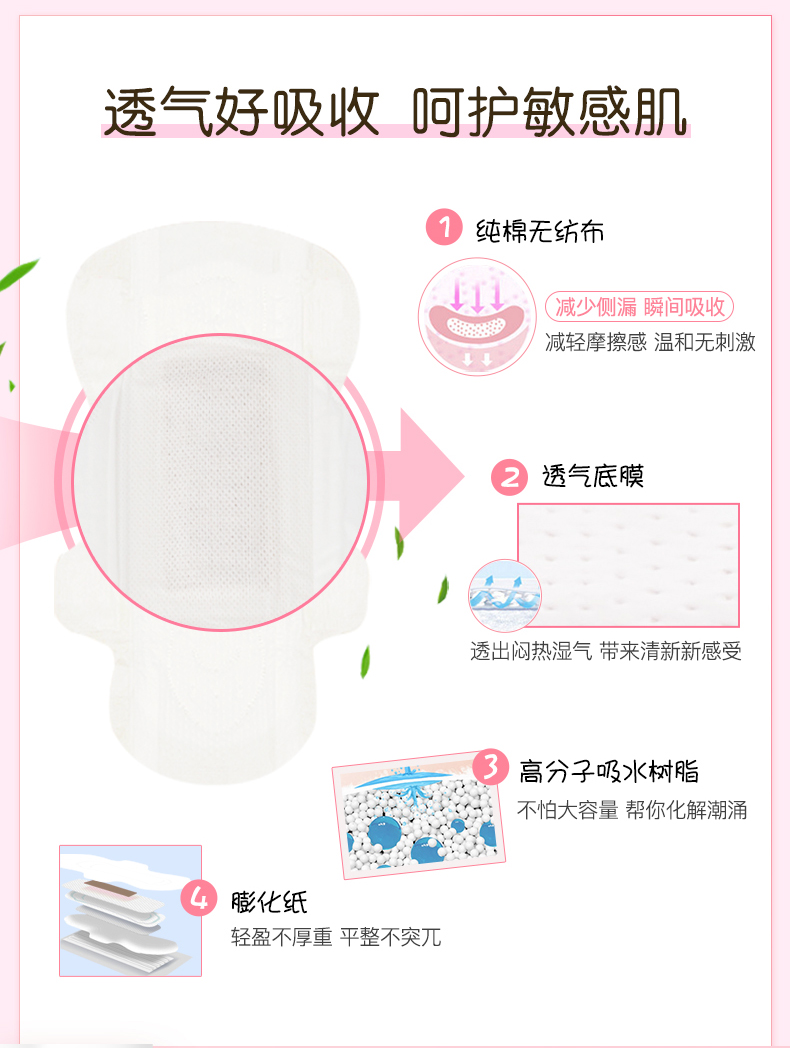 日用组合装,绵柔亲肤卫生巾,轻薄透气,三重持久,海量瞬吸,加长加大尾翼,防侧漏不反渗,给你清爽每一天!