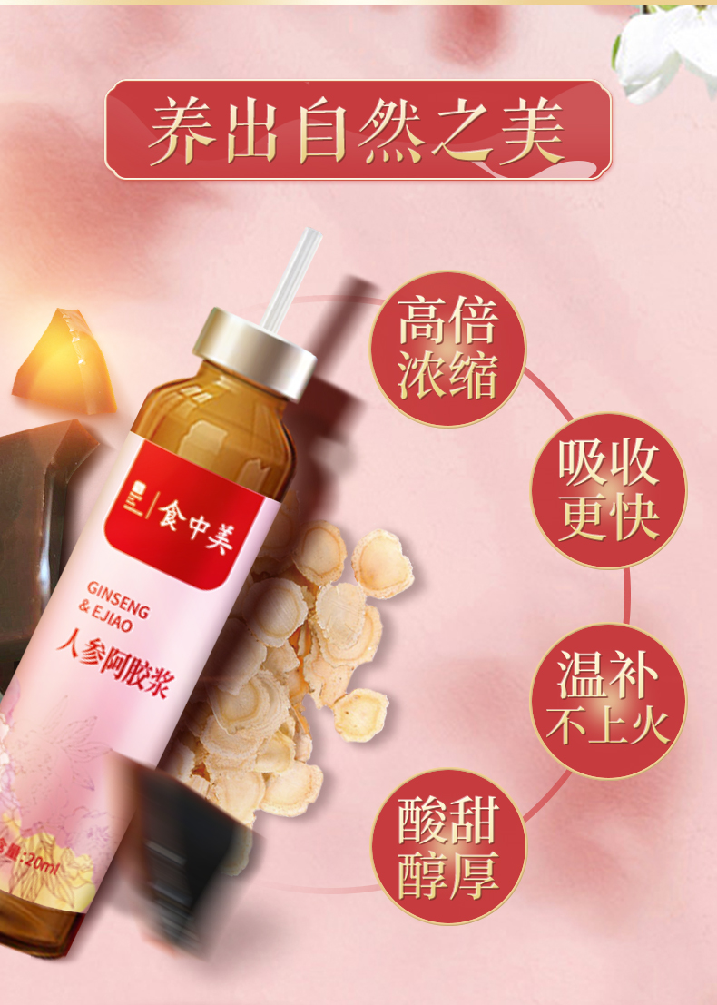 人参阿胶浆20ml*20支口服液,完美素颜日常护肤必入!健康养肤食中美人参阿胶浆胶原蛋白口服液,古法熬制,安全健康,营养全面,【赠运费险】
