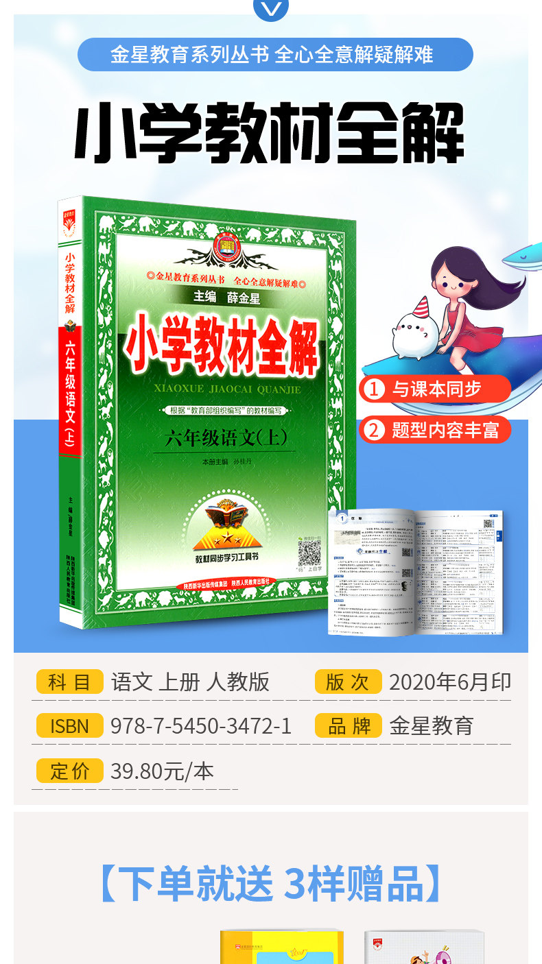 买一赠三,超值赠品!2020人教部编版全解六年级语文上册,知识点进行详细梳理,教科书同步讲解训练配套教材。图文结合,重点突出!助力提升孩子学习成绩!