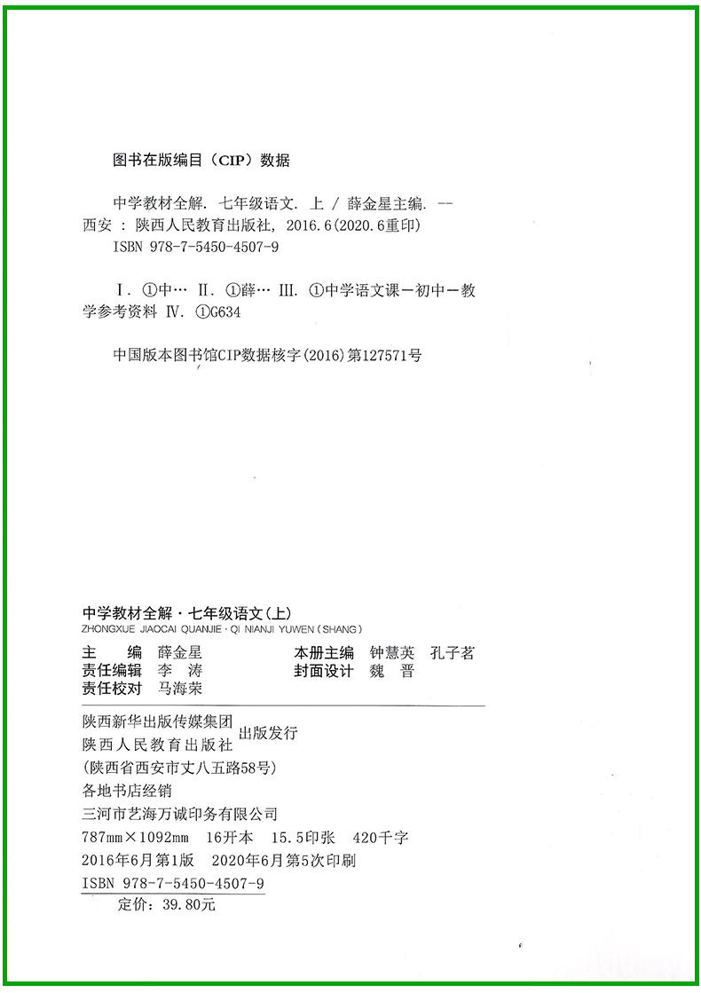 【买一送三】七年级中学教材全解,教科书同步讲解训练配套教材,知识点进行详细梳理。图文结合,重点突出!助力提升孩子学习成绩!