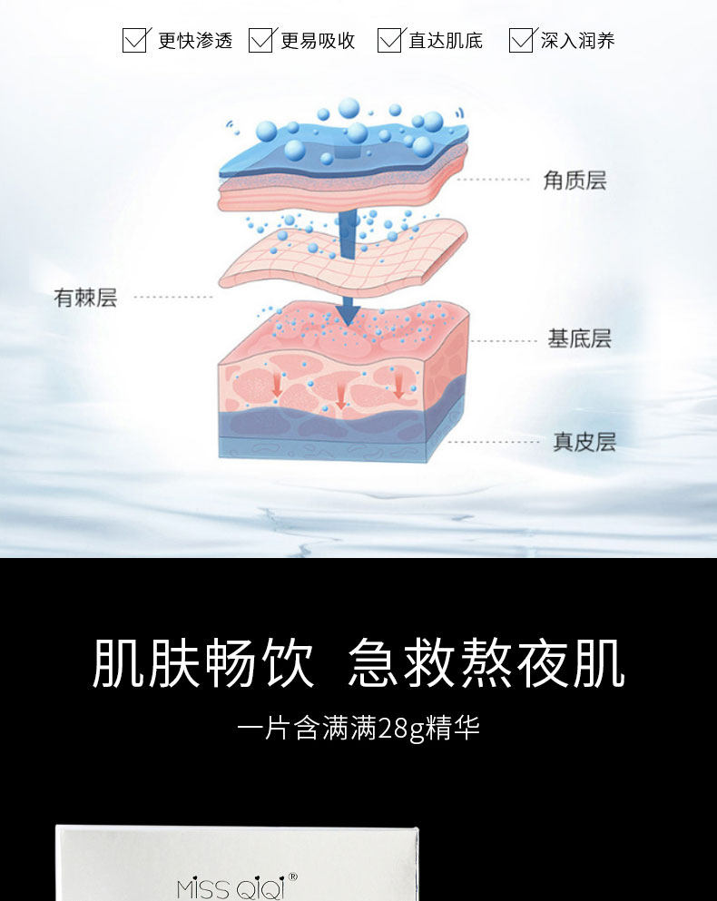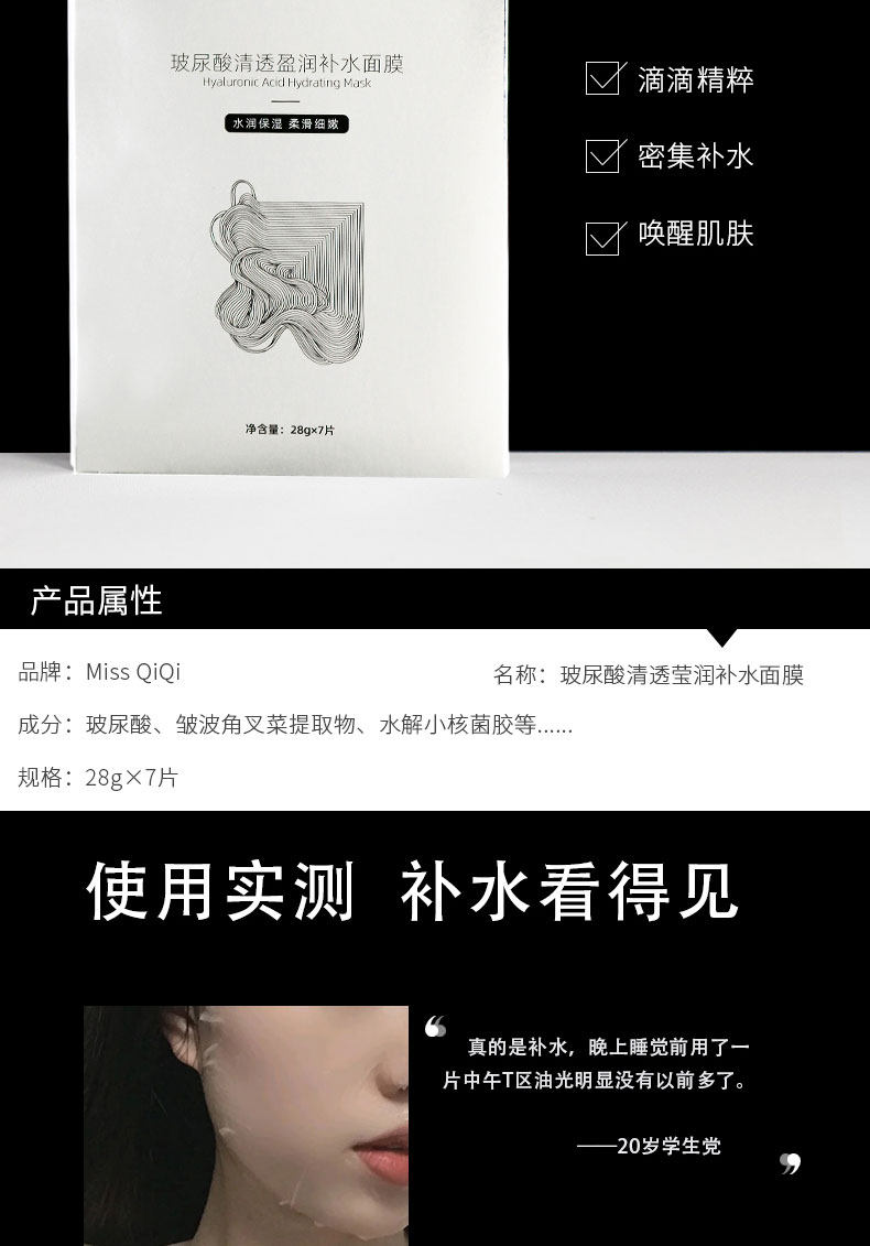 2片装面膜,超补水,收缩毛孔,层层深入补水美白,远离肤色暗沉,弹润光泽养肤,长久锁水保湿,远离粗糙干燥,敏感肌可用!