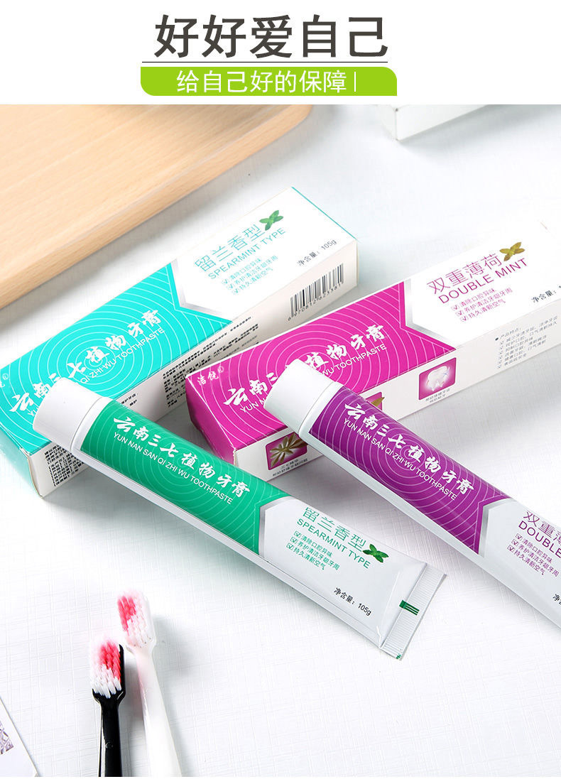【拍两件更划算,第二件才4元,拍2件13.9元共发4支】专注中药牙膏57年,三七原液萃取,两种香型,护龈清火!解决牙龈肿胀,口腔上火,洁白牙齿、清新口气效果达86%!居家必备,不嫌多~