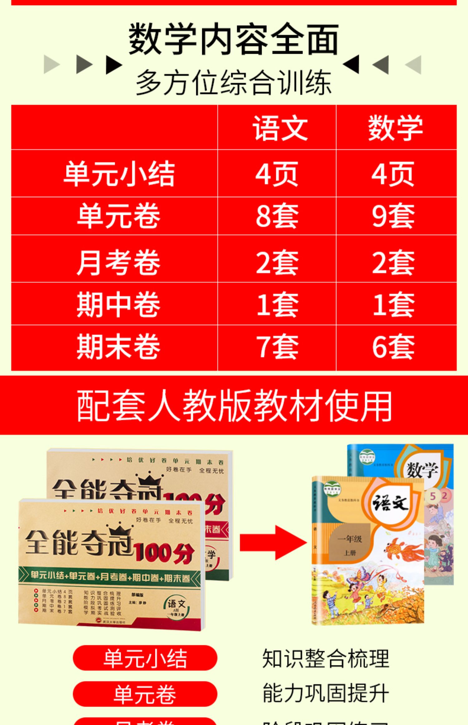 一年级同步测试卷,名校教师编写,语文数学全2本,重点辅导。题型丰富,内容新颖。一课一练,加深基础,暑期开学季必备,趁促销提前囤起来,让孩子赢在起跑线上!