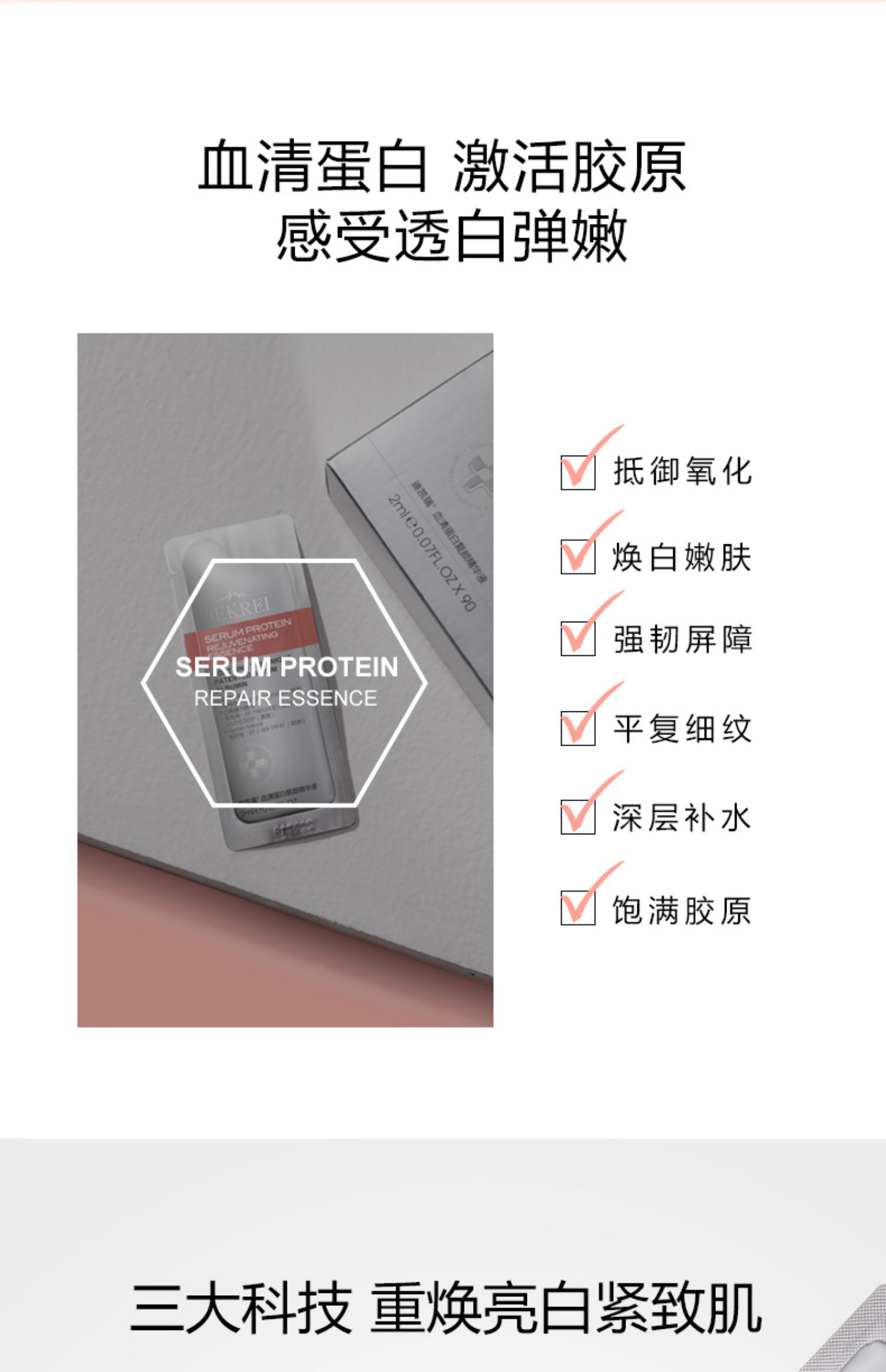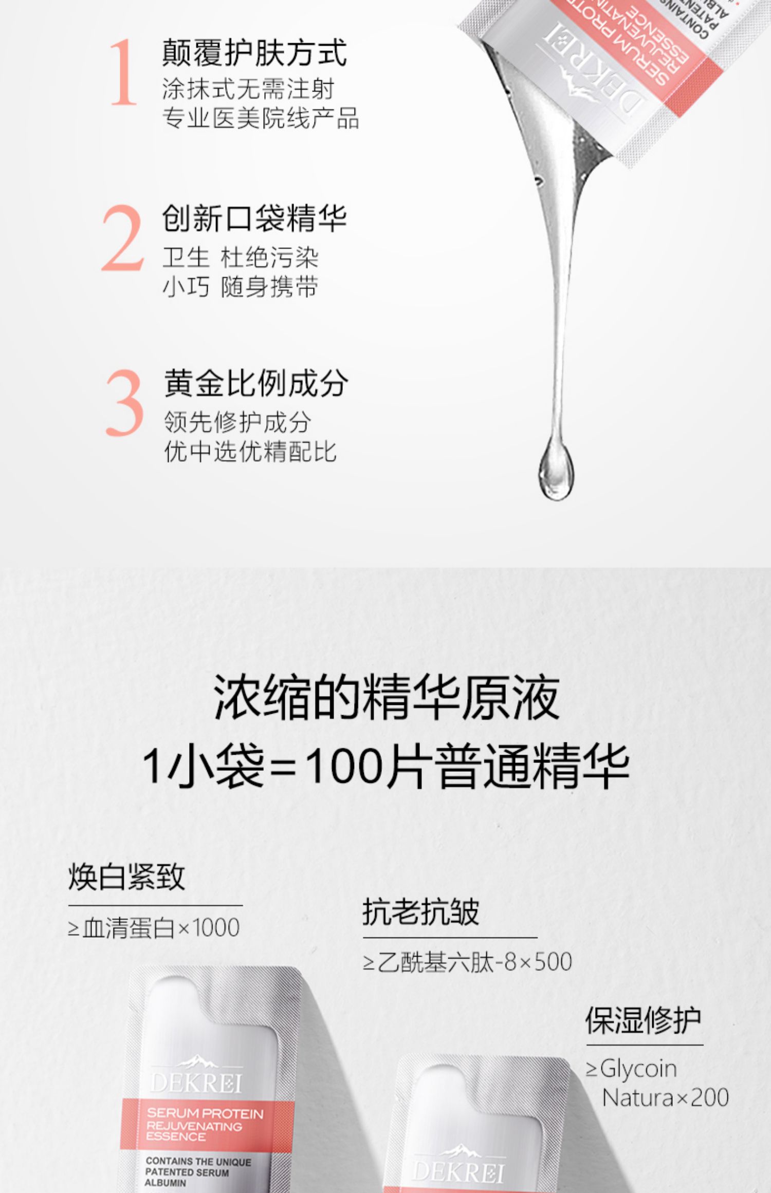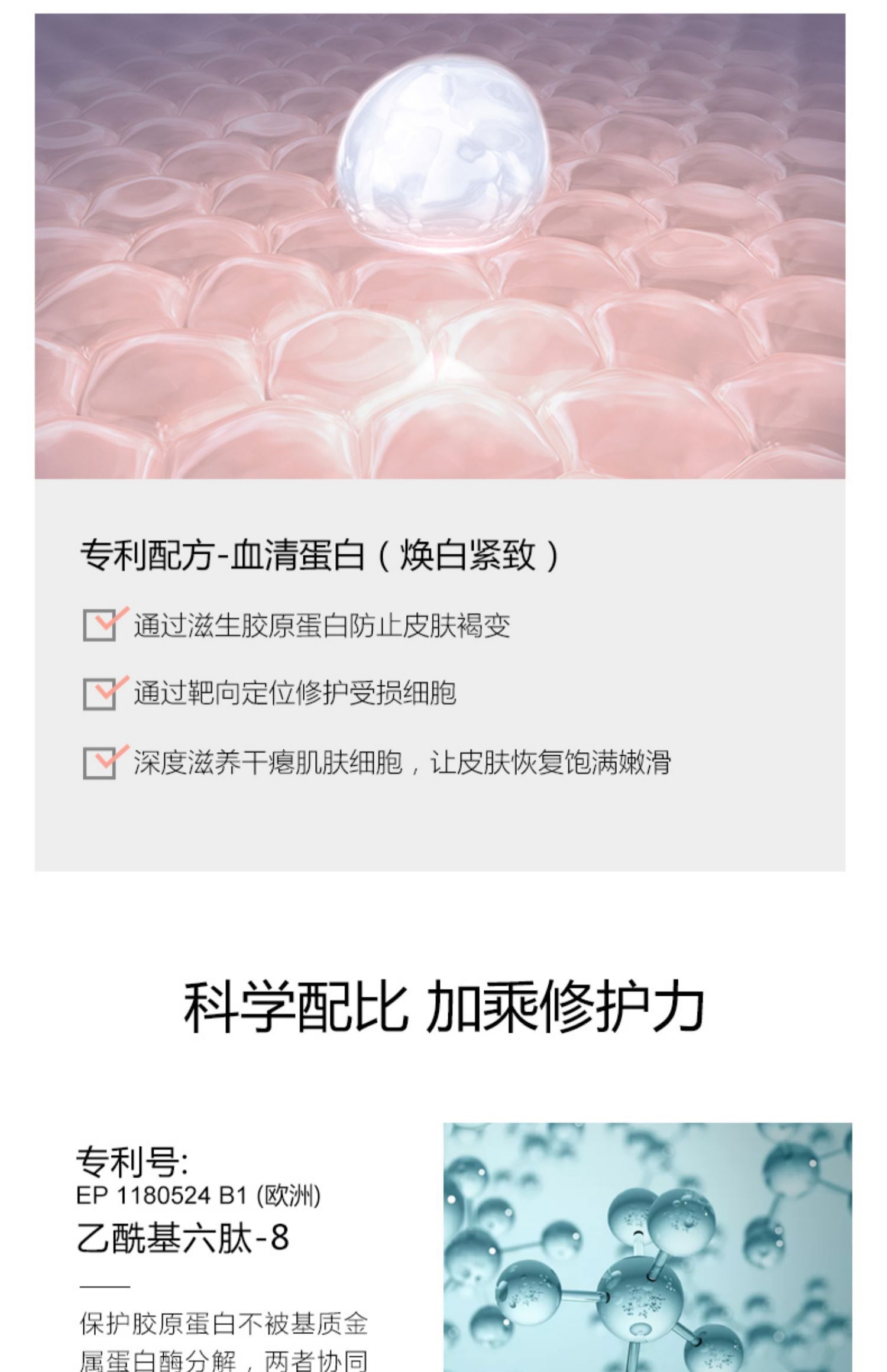 活动礼遇季大优惠,5大细胞焕活因子密集修护皮肤,增强肌肤弹性!改善暗沉,抚平细纹,用血清白蛋白抵抗老化,提亮肤色,抵抗水分流失,恢复肌肤健康状态,清爽不粘腻,易吸收。