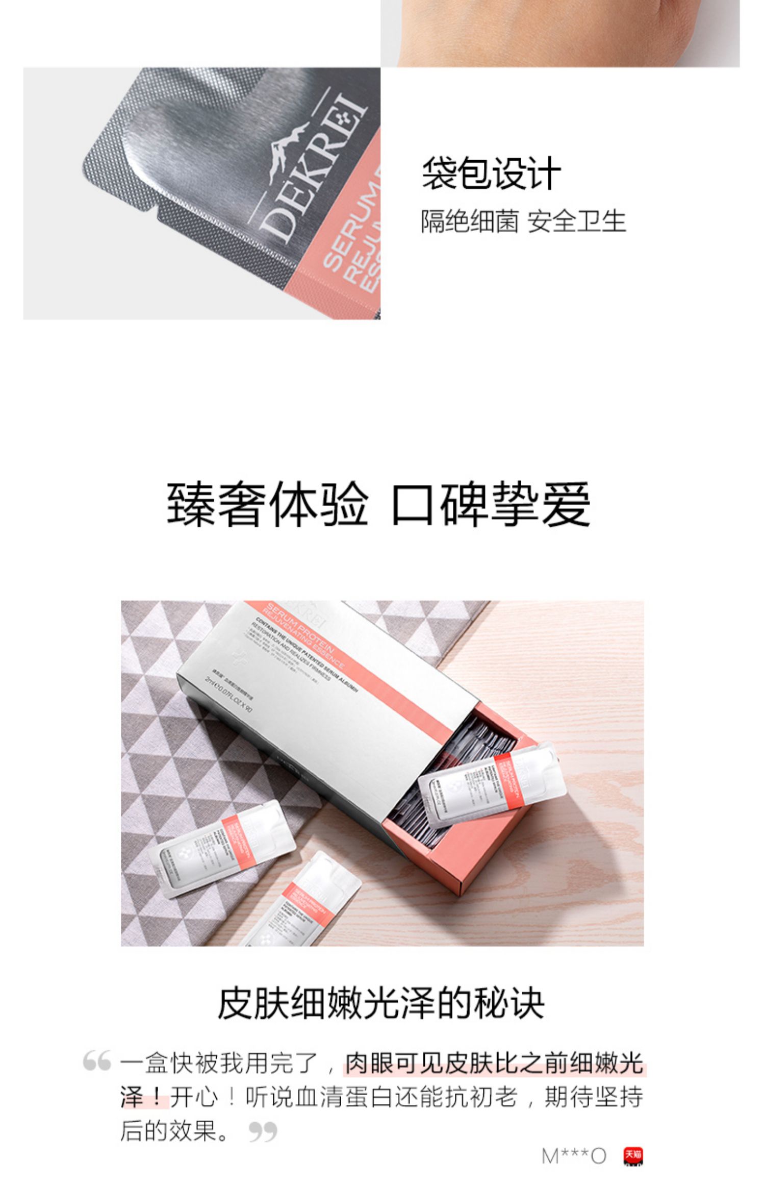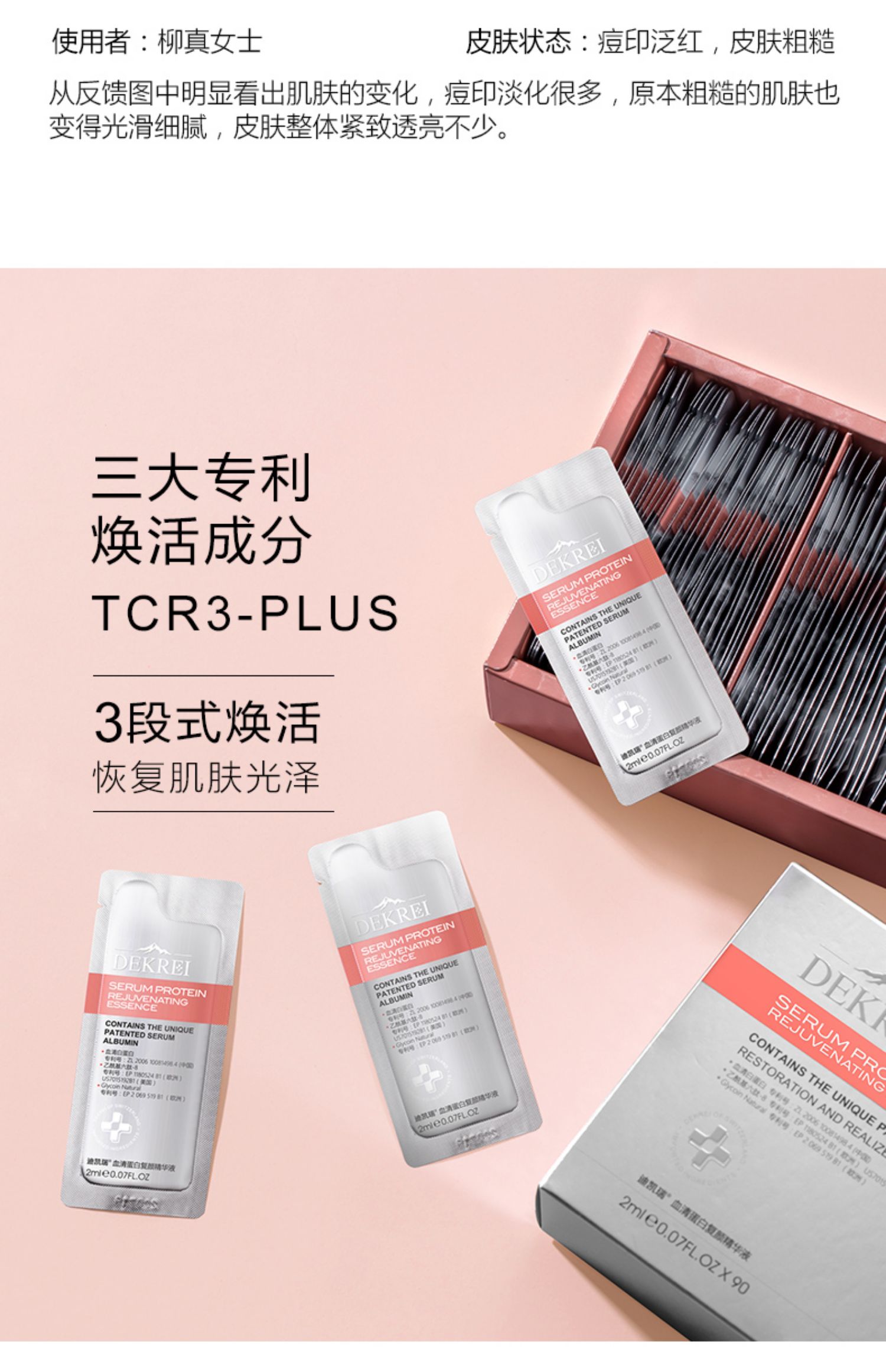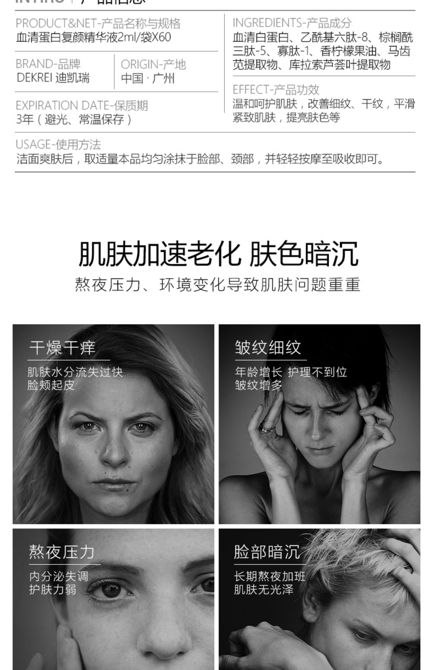 活动礼遇季大优惠,5大细胞焕活因子密集修护皮肤,增强肌肤弹性!改善暗沉,抚平细纹,用血清白蛋白抵抗老化,提亮肤色,抵抗水分流失,恢复肌肤健康状态,清爽不粘腻,易吸收。