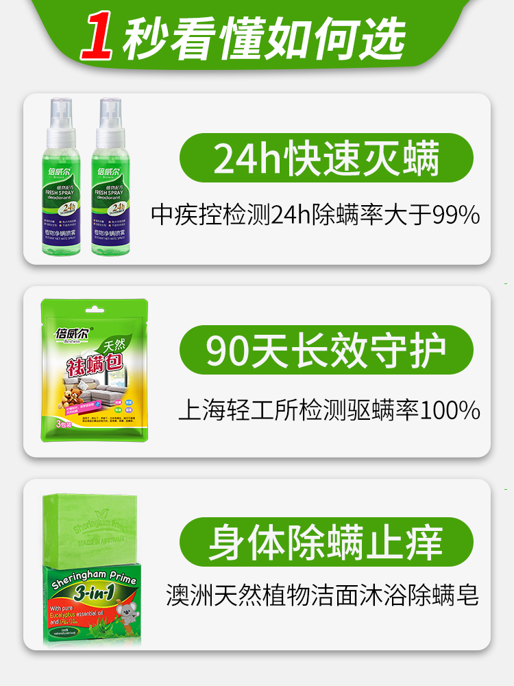 【倍威尔超值3包装】快试试这款除螨神器,疾控中心检测认证,不给螨虫作案的机会,祛螨效果没话说!天然植物中草药成分,多场合可用,安全有效更健康,婴儿孕妇都能放心用!享受品质无螨的生活~