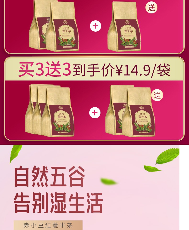 买二发三,买三发六,红豆薏米茶薏仁茶祛湿茶,养生必备,独立小包装装,精选多种食材,真材实料看得见,色泽金黄,无添加,口感清香回甘,每天一杯,喝出健康好气色,无湿一身轻!!